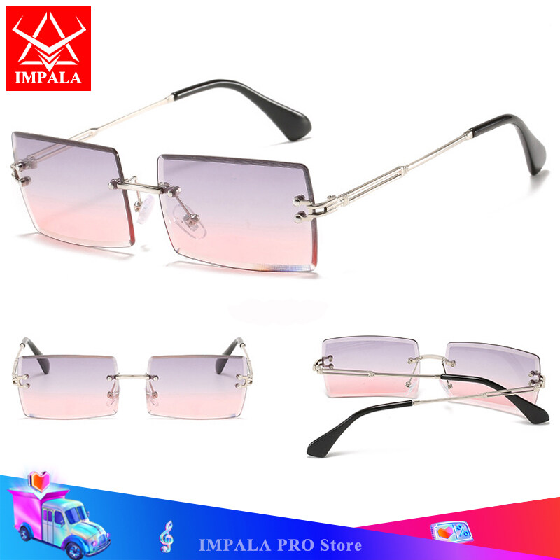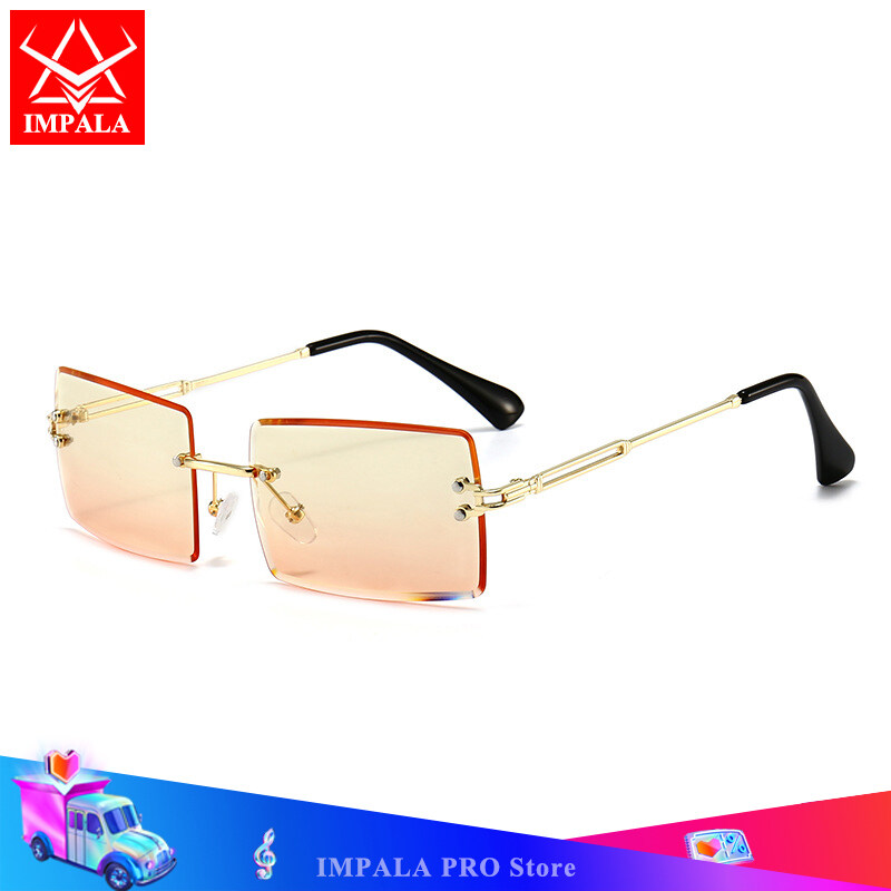 IMPALA QT1802W Fashion Rimless Glasses for Women Korean Style Sunglasses UV Protection HD Lens Metal Frame Sqaure Sun Glasses Cool Style Women's Sunglasses
