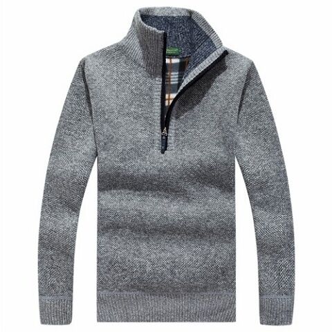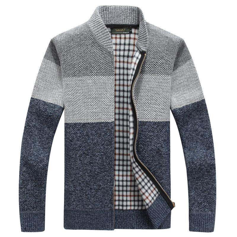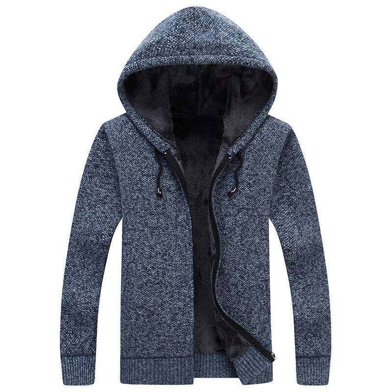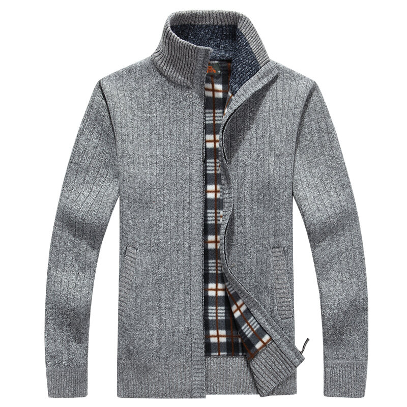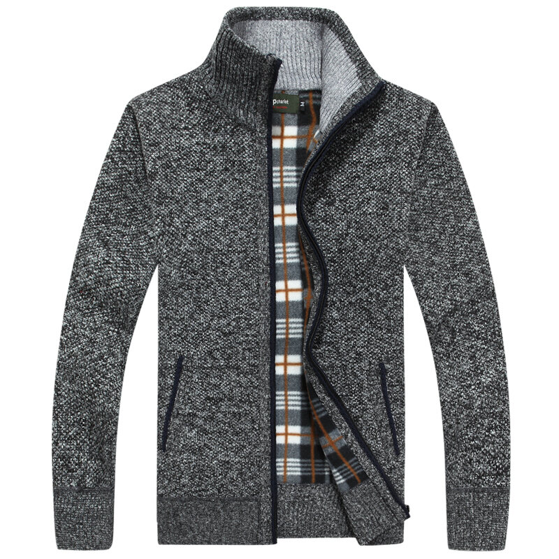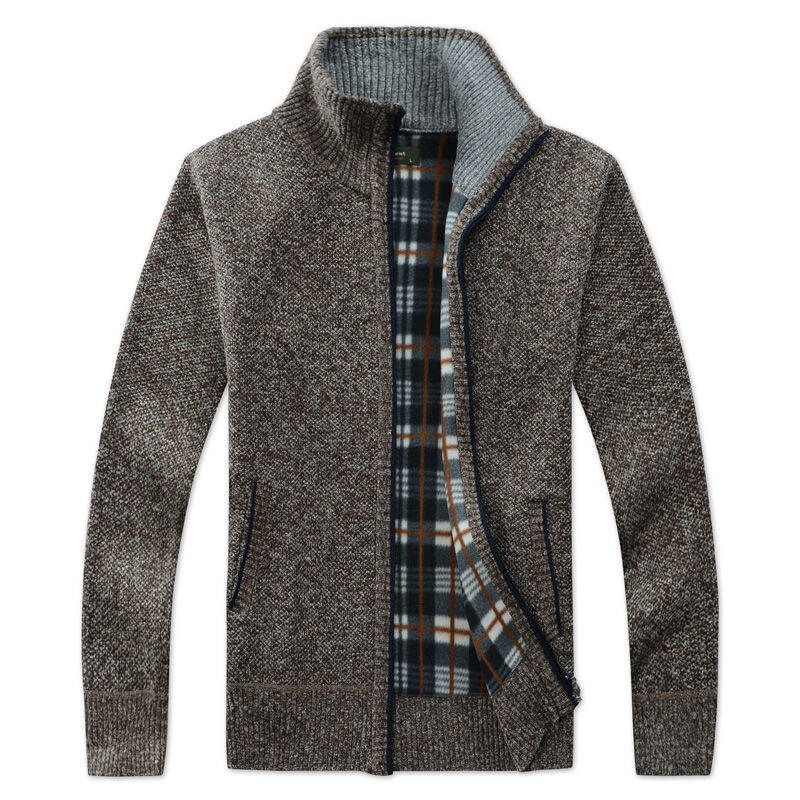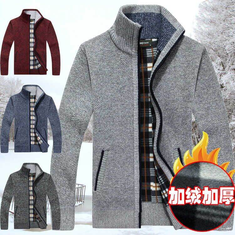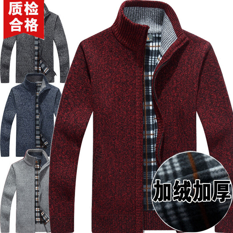 Autumn and Winter Men's Casual Fleece-Lined Thickened Cardigan Sweater Stand Collar Youth Turtleneck Sweater Men's Sweater Coat Men's
