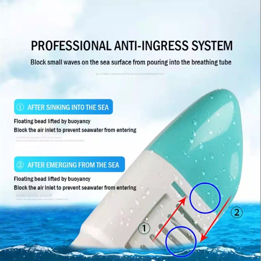 1. Put on the diving mask and place your head in the water to ensure that no water enters the mask.