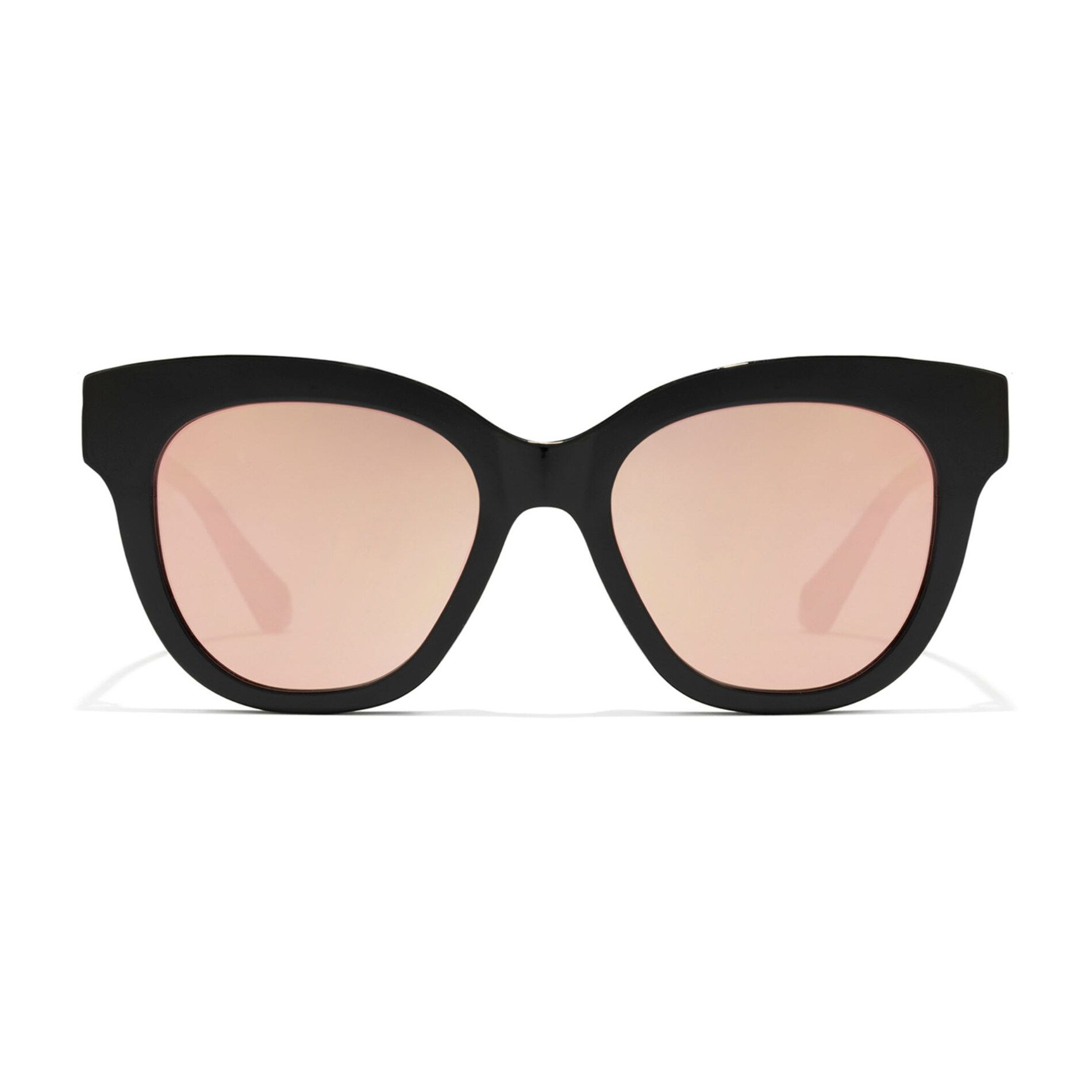 The elegant rounded butterfly design of these women’s sunglasses is reminiscent of the Hollywood of the 70s. The polished black frame and mirrored rose gold lenses impart a sophisticated, feminine look.