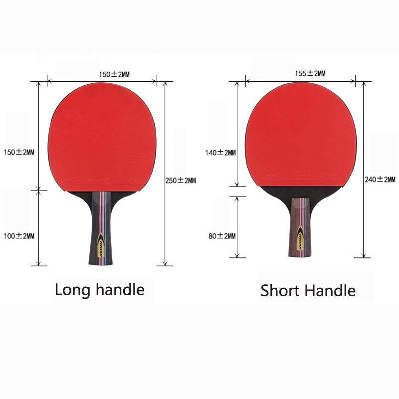 Double sides pimples in rubber, 5 layers of solid baseboard, good quality racket, cost effective.