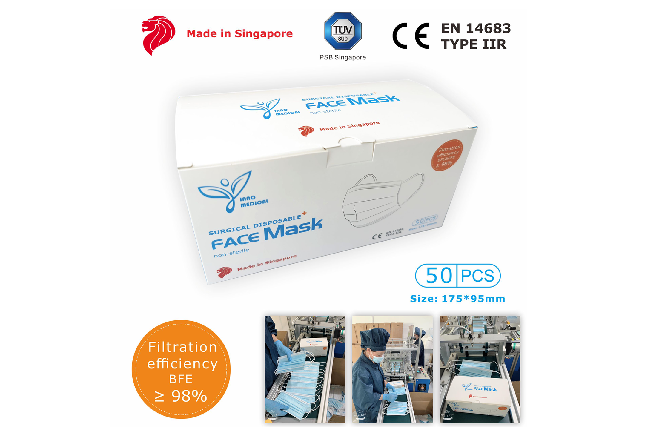 Made in Singapore HSA Licensed Disposable MEDICAL MASK, 50pcs/box