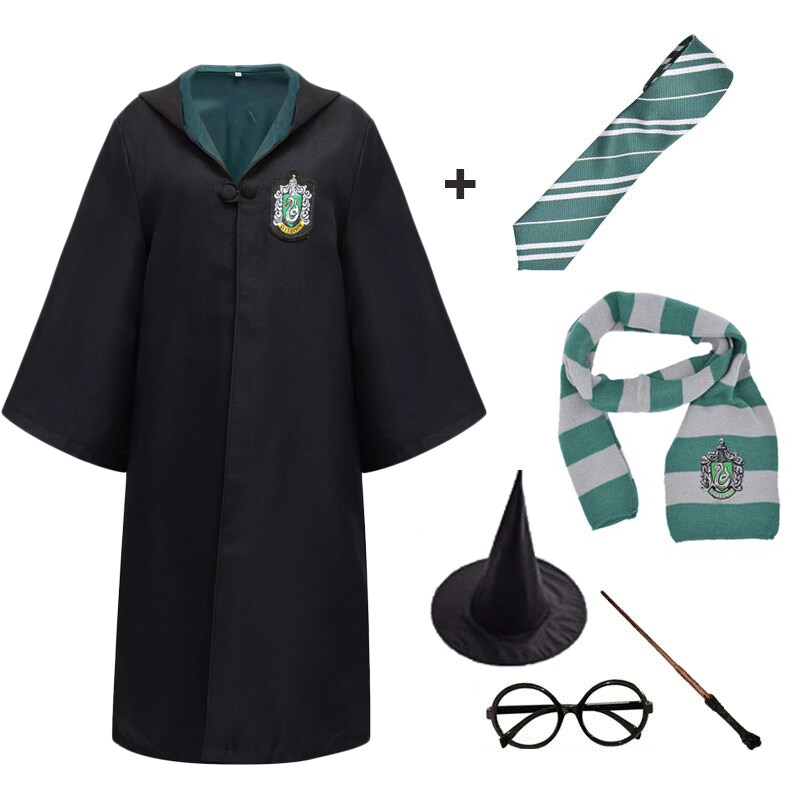 Harry Potter Robe Costume Cape Cloak Halloween Cosplay With Tie Scarf Wand Glasses Potter Cosplay for Hermione Kids Party Accessories