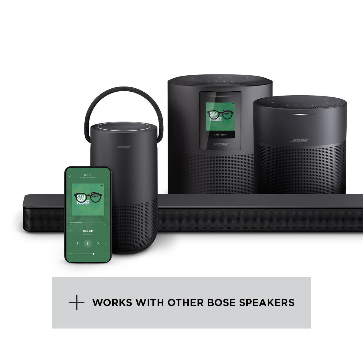 Bose SimpleSync™ technology allows you to pair your Bose Smart Soundbar 300 with compatible Bose products. Want to watch TV but not disturb anyone else? Pair your soundbar with select Bose headphones for a personal TV listening experience. Want to listen to the same music in different rooms at the same time? Pair your soundbar with a select Bose Bluetooth speaker to add more sound around the house.