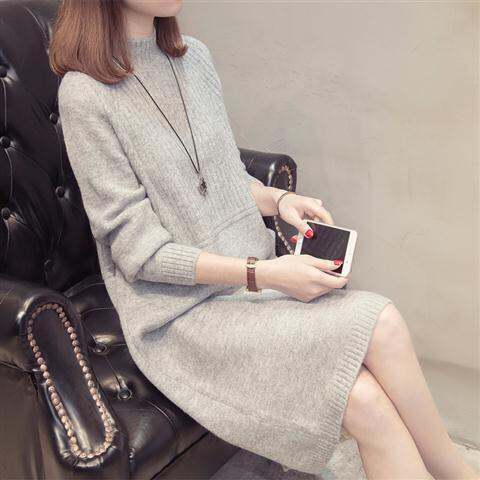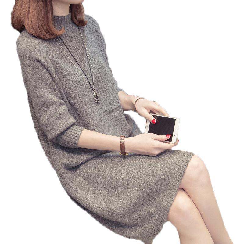 Half-high Collar Sweater Mid-Length Bottoming Shirt Autumn and Winter Clothing New Loose Korean Style Solid Color Super Popular Pullover Women's Sweater