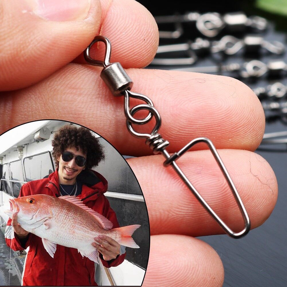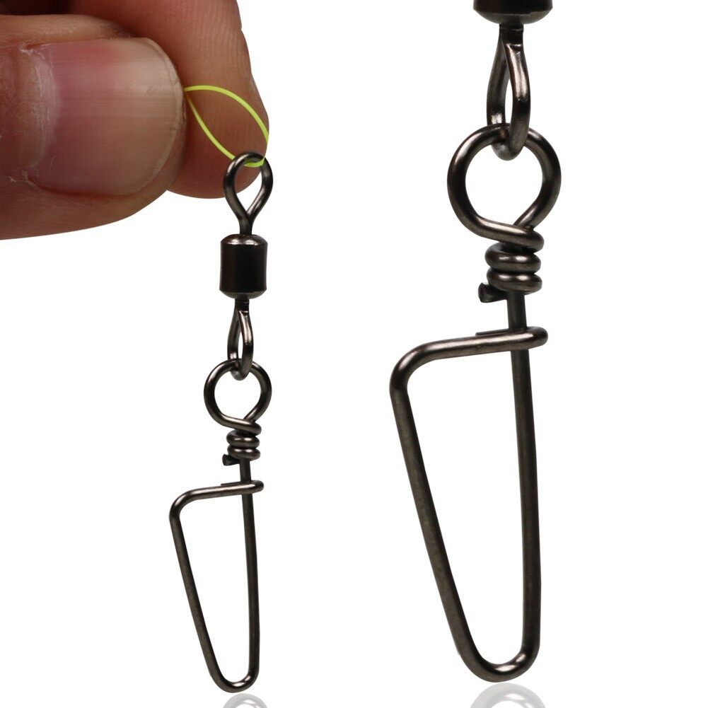 Sougayilang 33mm-70mm 50pcs Swivel Gear Fishing Swivels with Snap Lock Stainless Steel Black Color Nickel Fishing Connector Fishing GearFeature:Package List: