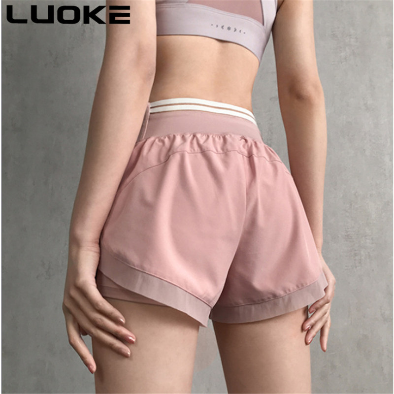 LUOKE Sport Shorts Women 2 In 1 Running Short Pants for Women Sports Shorts Women's Loose and Quick-drying Running Fitness Pants with Anti-glare High-waist Yoga Pants