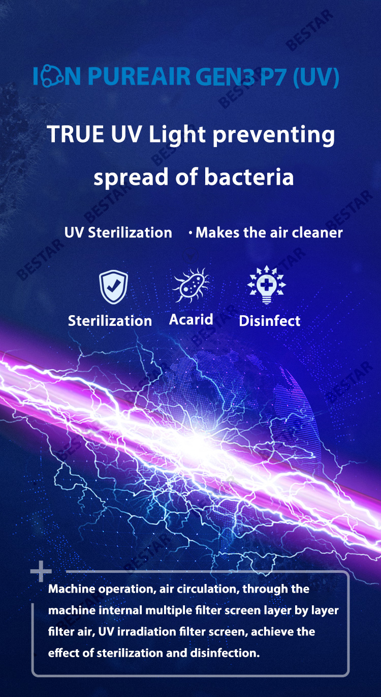 [SG SELLER]Air Purifier ION PUREAIR GEN3 P7(UV) True UV Light Sterilizer/ LCD Display/Hepa Filter/Negative Ion/Compact/Quieter/Powerful(1+1 Free H13 Hepa Filter)