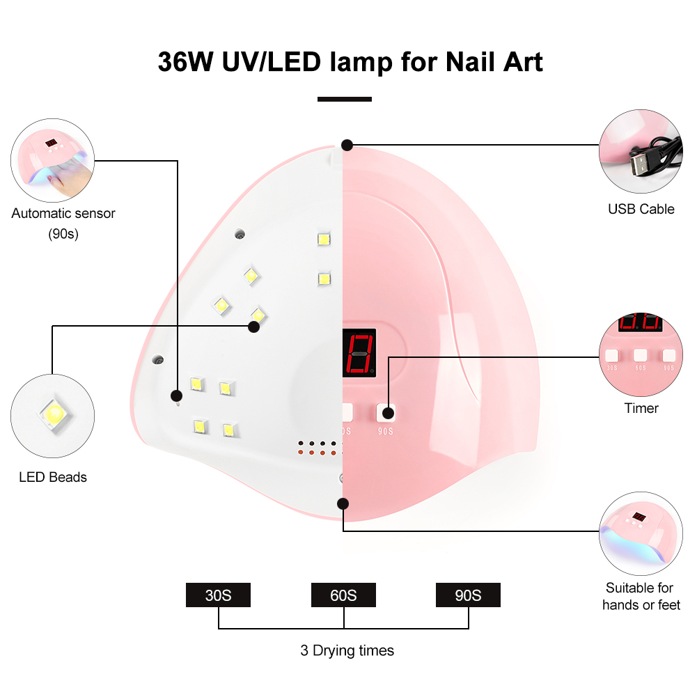 COSCELIA 36W UV LED Lamp Nail Lacquer 8ml 10 Color Gel Polish Nail Decoration Set Nail Art Kit Manicure Tool