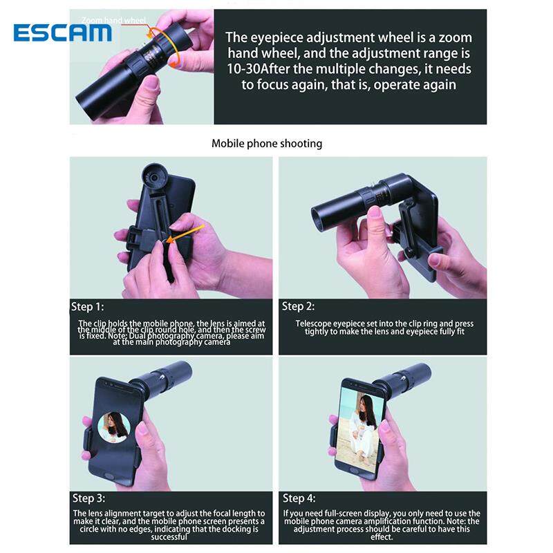 ESCAM Phone Telescope 10-300x40mm Monocular Telescope Long Range For Handphone Scope Super Telephoto Zoom Monocular Telescope with Tripod & Clip Telescope astronomical