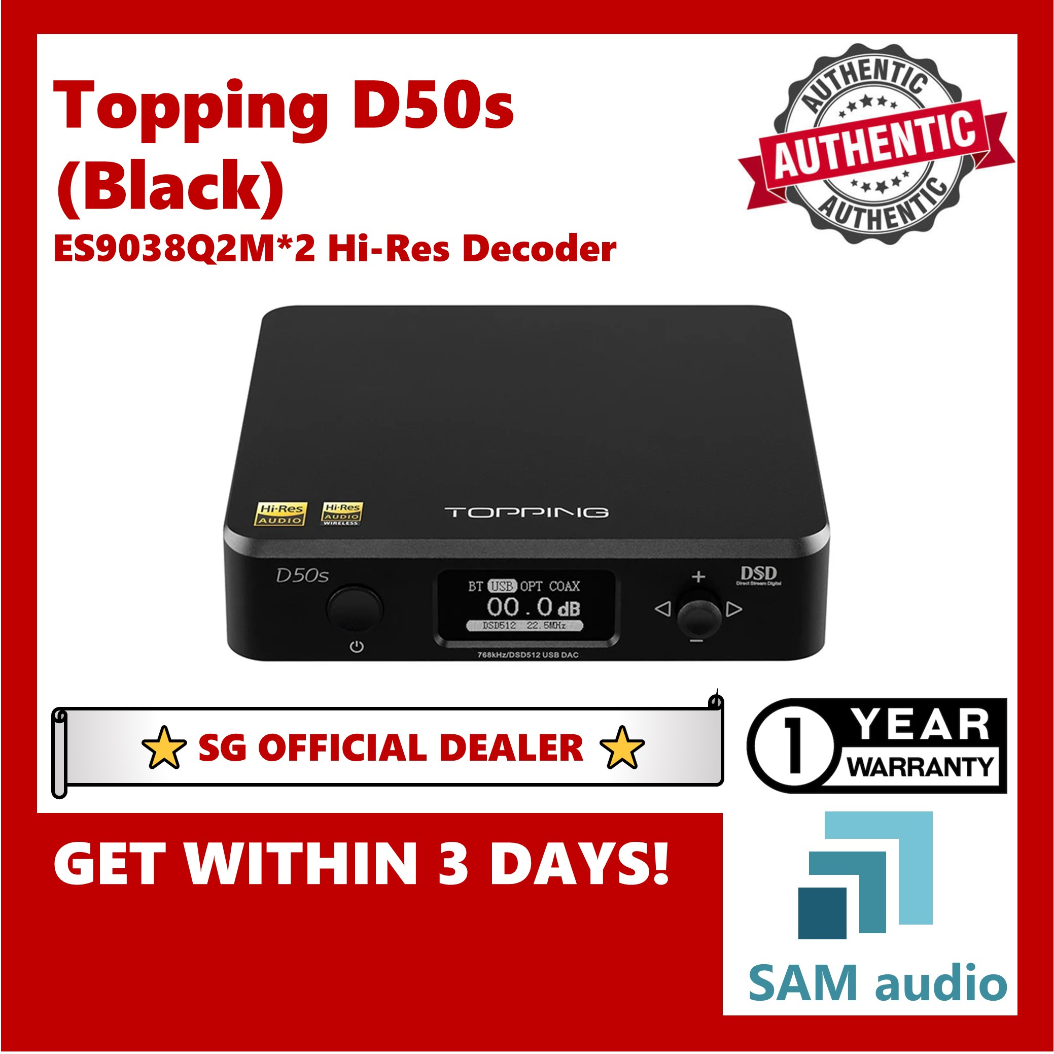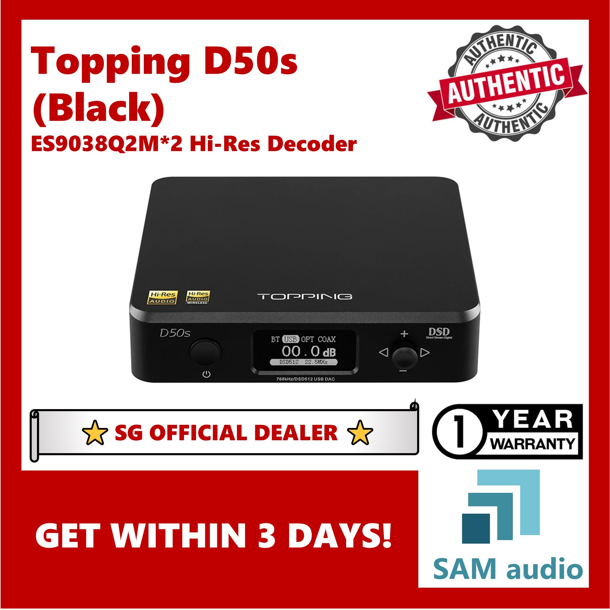 [SG] TOPPING D50s, Dual ES9038Q2M DAC, LDAC Bluetooth, Hifi Audio