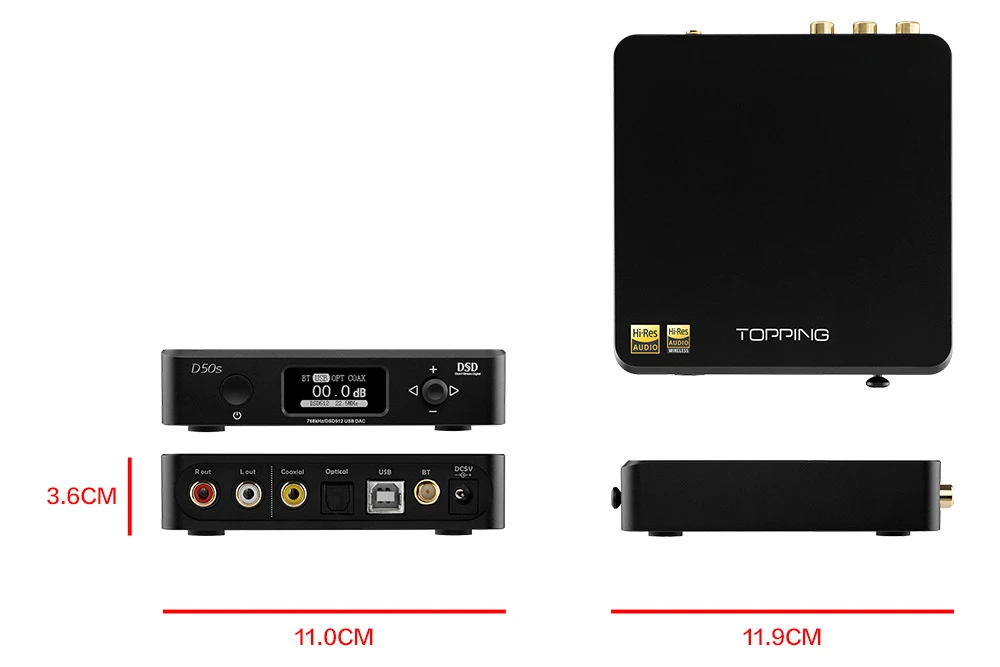 >The Topping D50s is the direct evolution of the D50, a proven DAC that is particularly appreciated by many customers and audiophiles. While this new model is largely based on the design and architecture of its little brother, the main evolution is in connectivity since the D50s now offers Bluetooth support. The device can now also be controlled via remote control and its audio performance has been revised upwards.