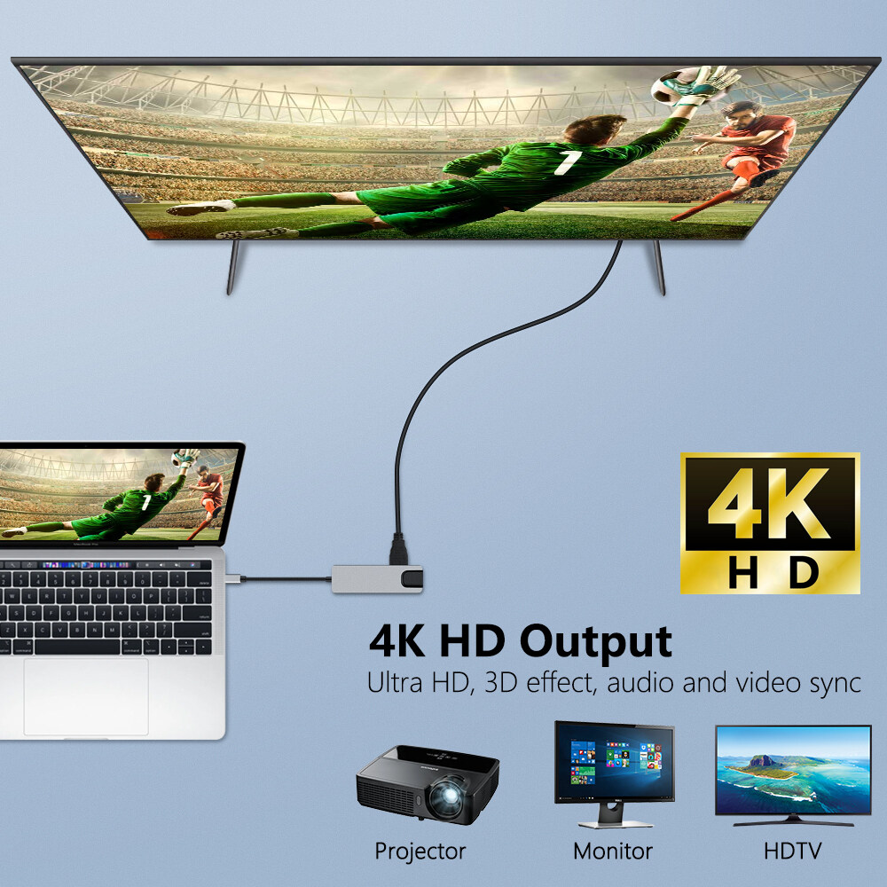 Mirror or extend the display of your laptop to your TV, monitor or projector in up to 4K UHD (3840 x 2160 @ 30Hz) resolution through the HD output port. Backward support 2K / 1080p / 720p / 480p / 360p resolutions.