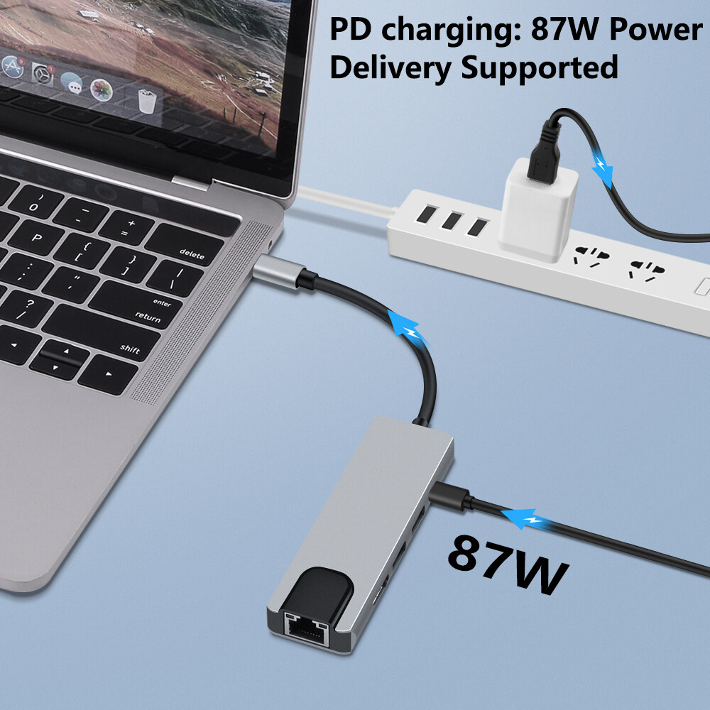 Multiport USB C Hub: USB-C Power Delivery Charging Port, USB C to HDMI Output, 2 x USB 3.0 Ports, Gigabit Ethernet port (RJ45 port) Functional and versatile.