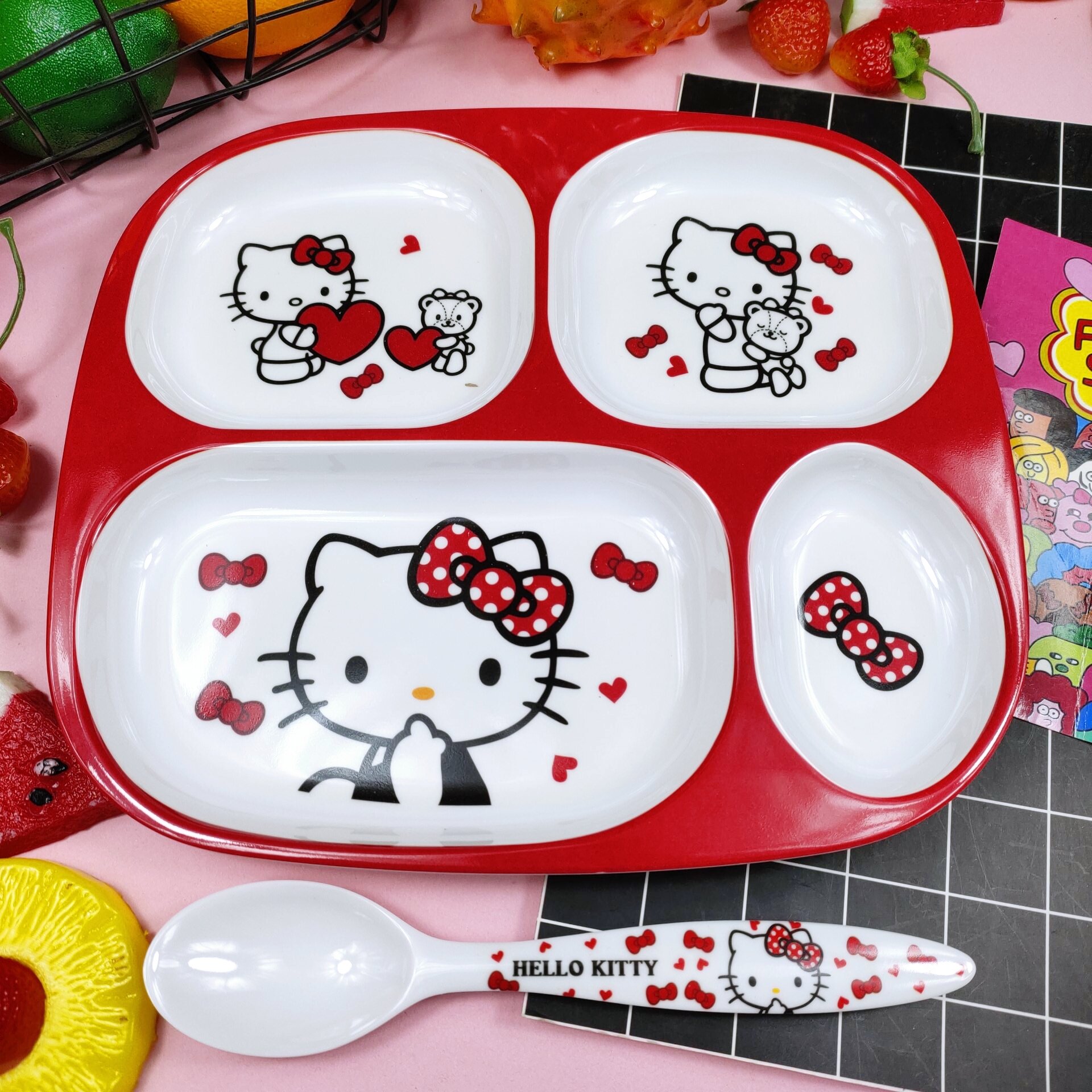 Children's Plate Cartoon Cute Baby Compartment Household Shatter-resistant Hello Kitty Plate Spoon Infant Food Supplement Learn to Eat