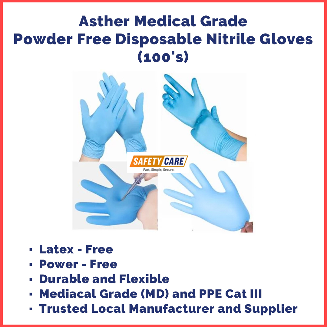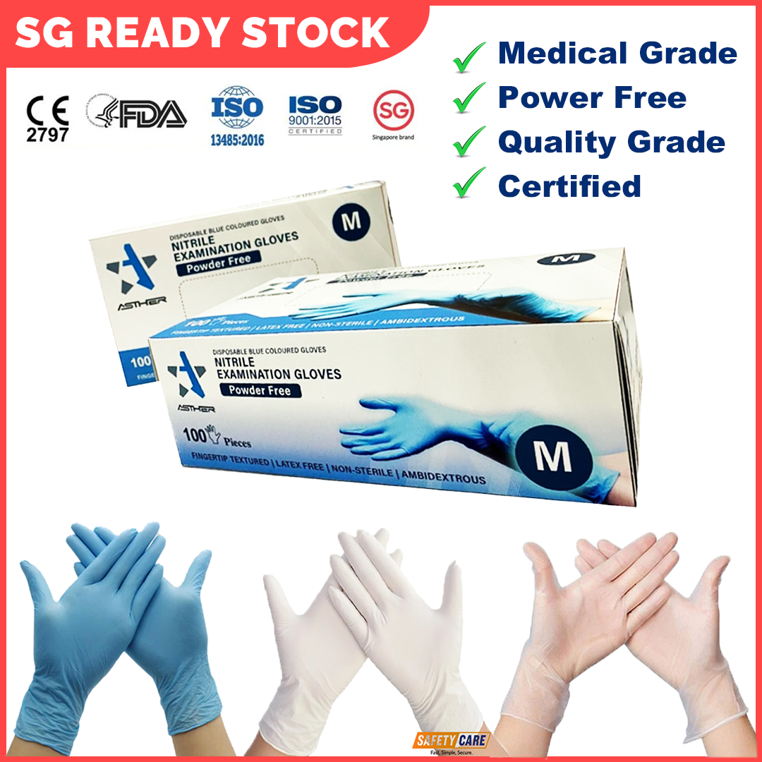 Nitrile Gloves, Medical Grade Gloves, Disposable Gloves (100's)(Powder Free) | Certified Glove SG Ready Stock