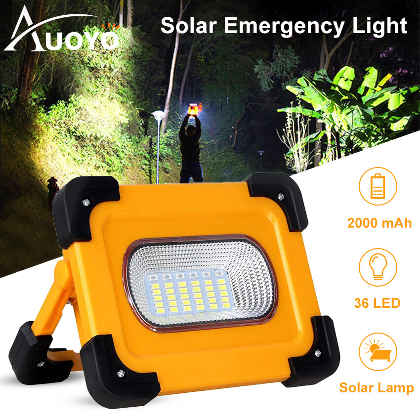 Auoyo Led Solar Lights Outdoor Waterproof Original Rechargeable Lamp Light Portable Solar Emergency Light Usb Led Sport Light Spotlight Outdoor SOS Warning Light Camping Light Rechargeable Emergency