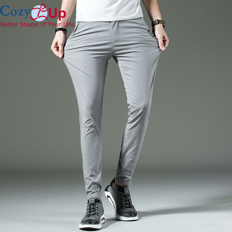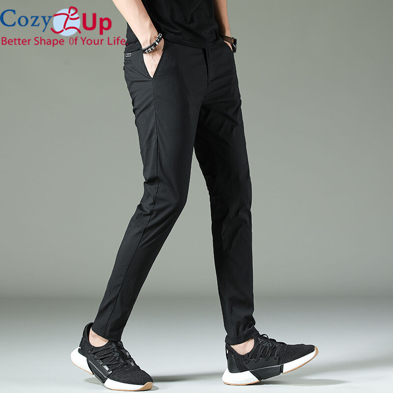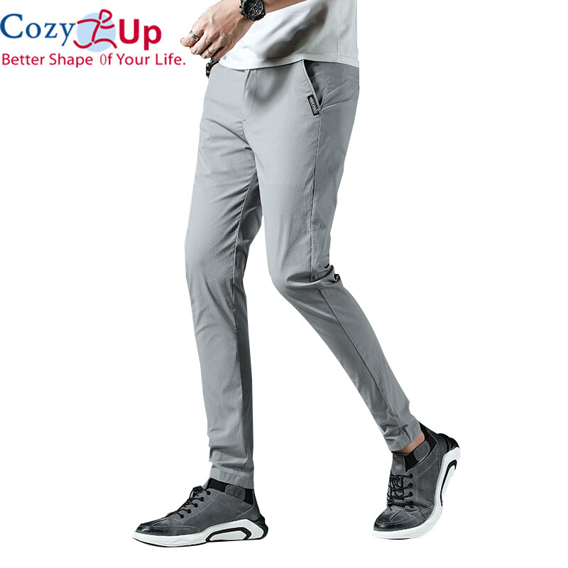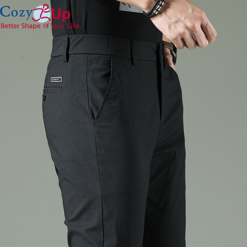 Cozy Up Men Long Trousers Solid Color Casual Straight Cotton Blended Soft Slim Fit