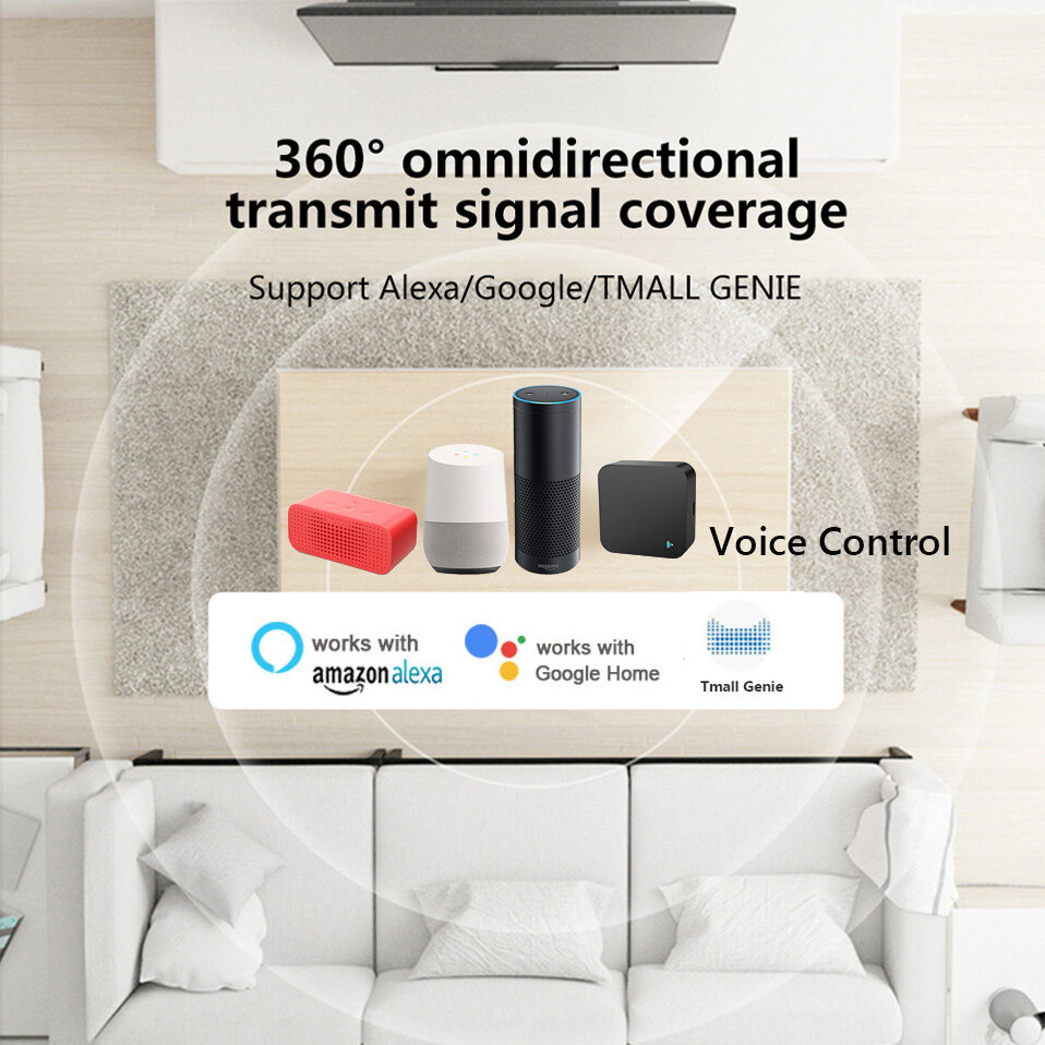 --【Voice Control】By connecting the App to Amazon Alexa, Google Home, you can control your home appliances by voice. For example: -Alexa, turn on the TV; -OK Google, set the air conditioner temperature to 25 degrees.