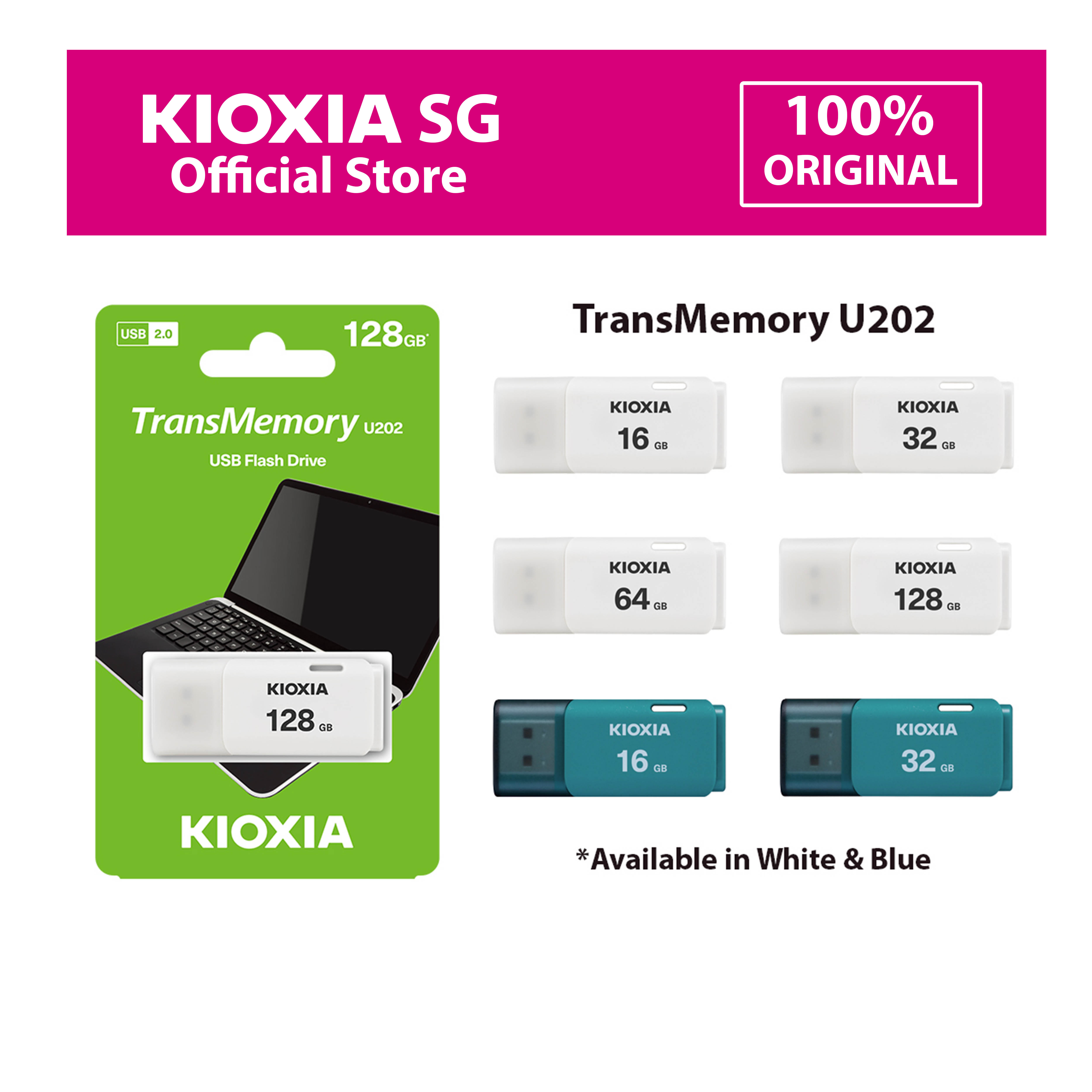 KIOXIA TransMemory U202 USB 2.0 Flash Drive in 16GB 32GB 64GB 128GB Thumb Drive - from JAPAN