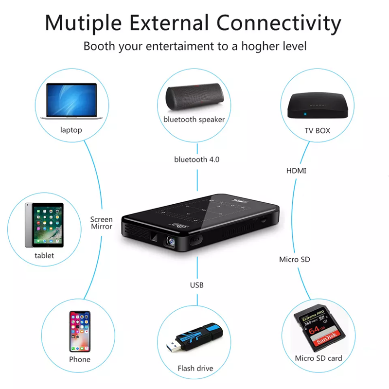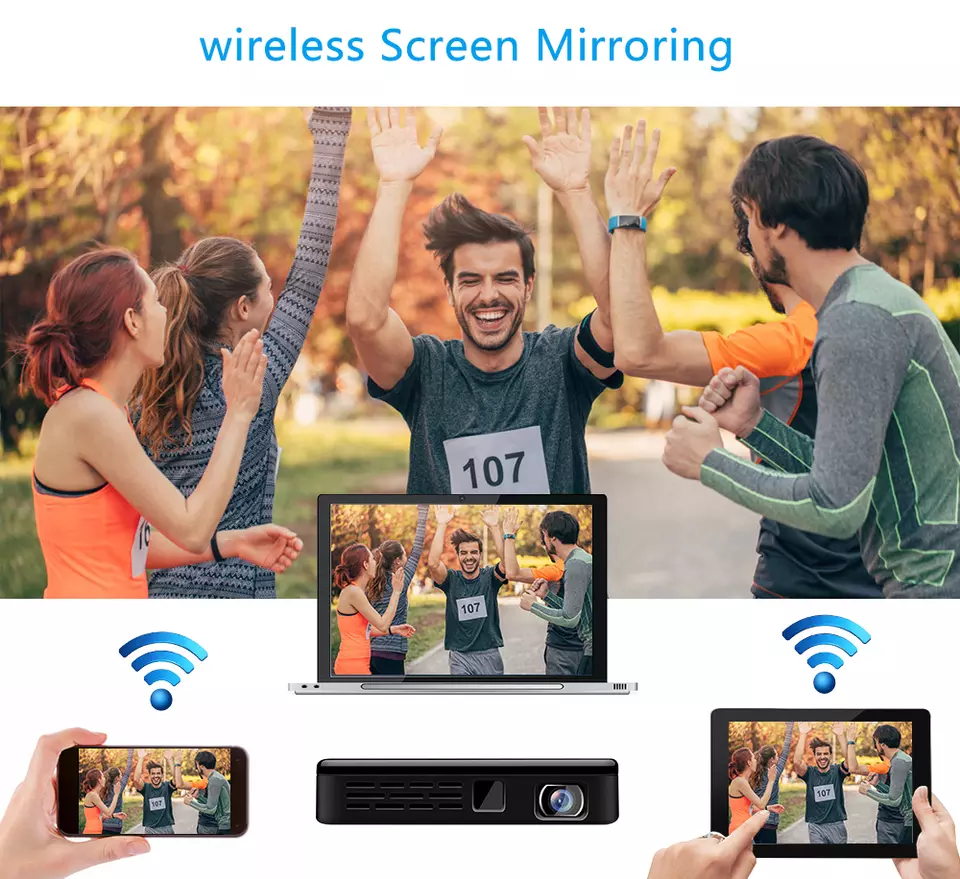 YJMOYE Mini Pico Digital Projector Portable 4K1080P Bluetooth Smart WiFi Wireless Charged Projectors for Home or Outdoor Theater