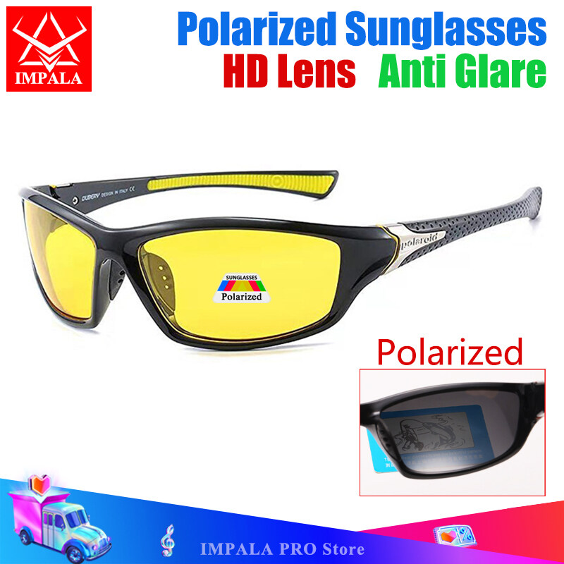 IMPALA PG1602W Fashion Polarized Sunglasses for Men and Women Anti Glare Sports Eyewear Korean Style Anti Sunshine UV400 HD Lens Night Vision Sun Glasses for Fisihing Driving Cycling