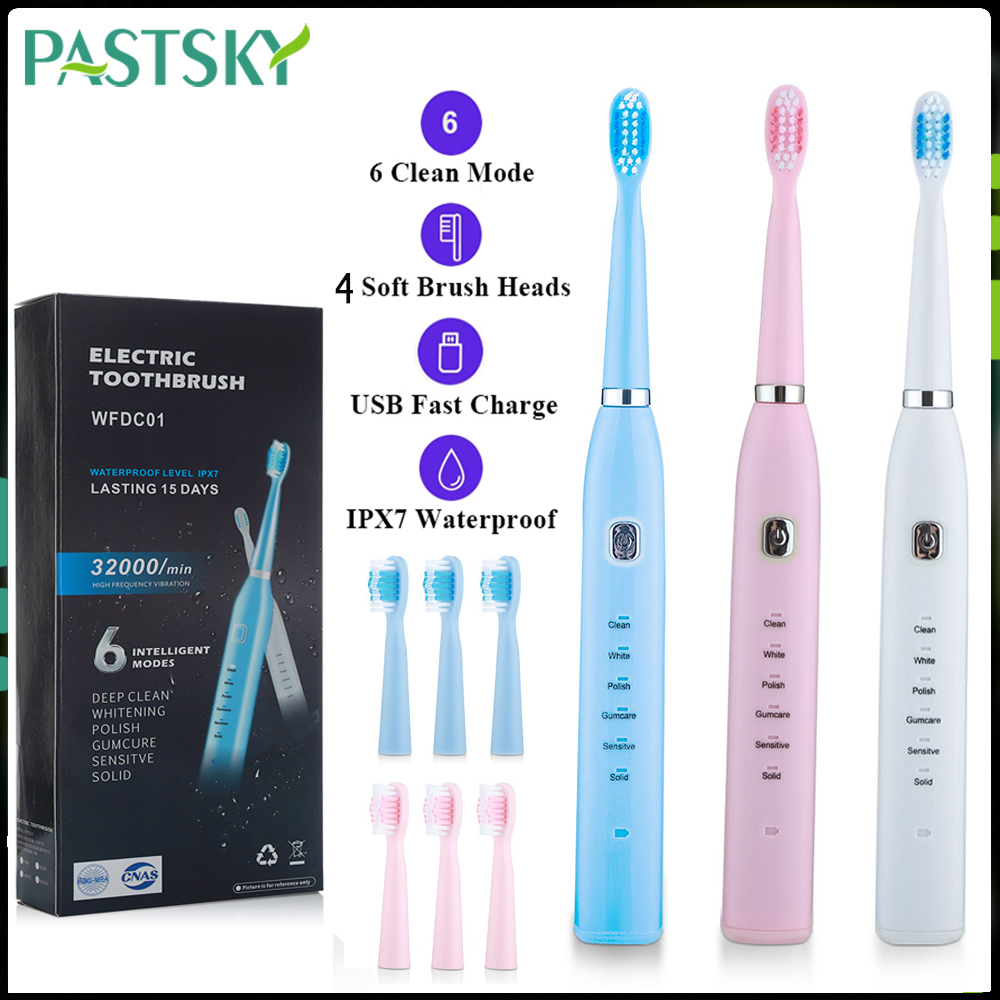 PASTSKY Electric Toothbrush Smart USB Rechargeable Tooth Brushes 6 Modes Waterproof Soft Bristles Gum Massaging for Adults Kids Teeth Cleaner