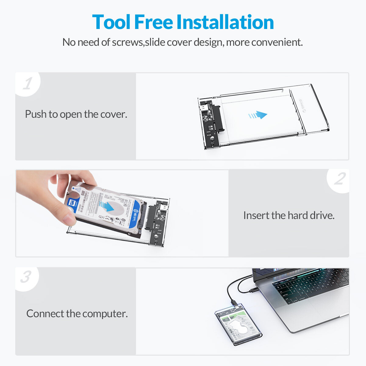 ORICO 2TB Mobile HDD Enclosure Case USB 3.0 to SATA HDD Hard Drive External Enclosure Case without screws For Windows/Mac(2139U3)