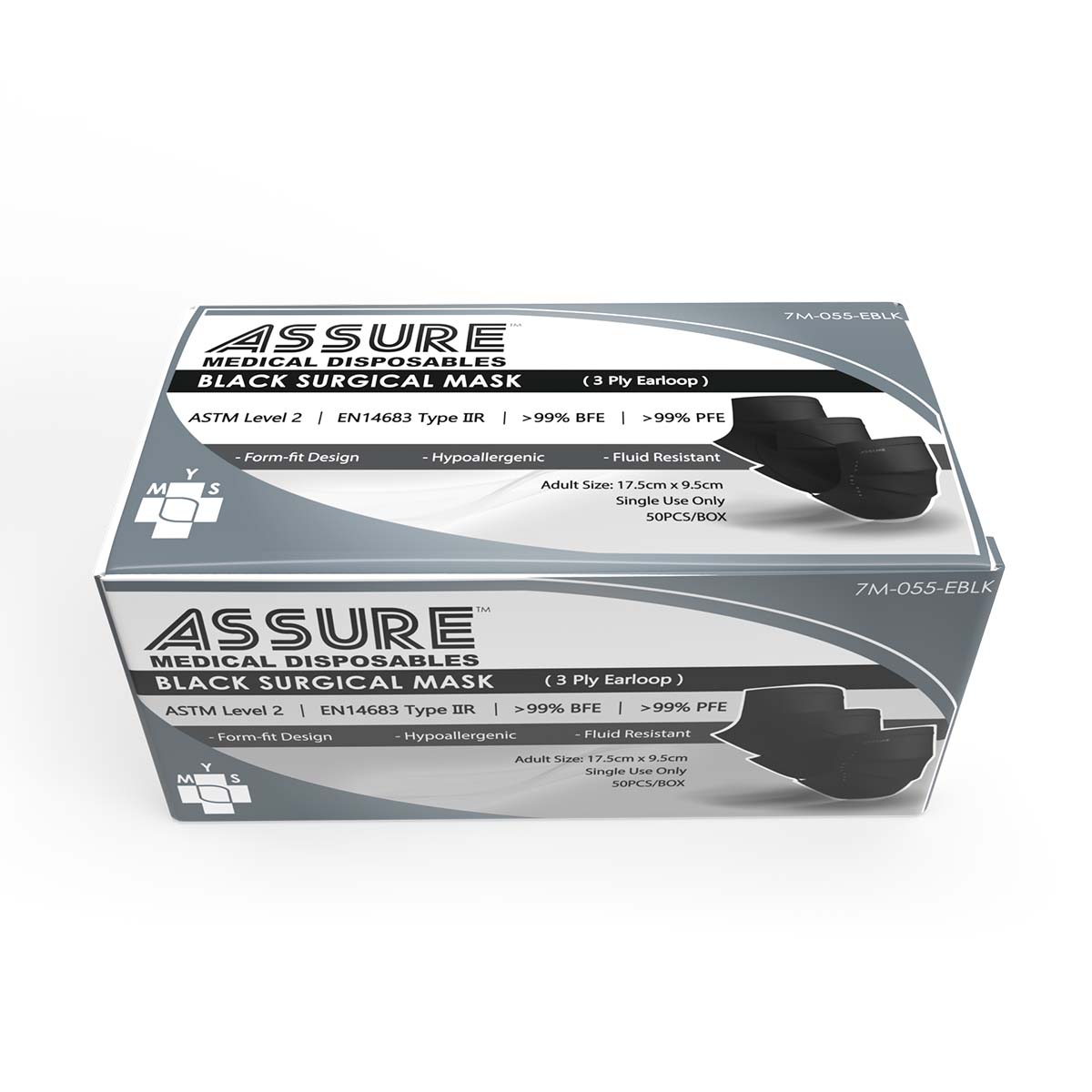 [Bundle of 3] ASSURE Black Surgical Face Mask 3-Ply With Ear- Loop, 50'S/Box