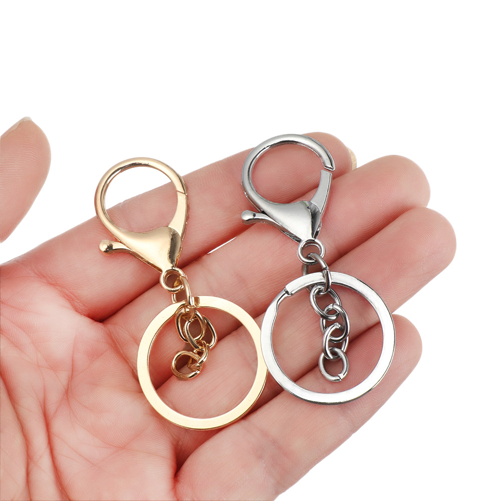 ★Ready Stock★5pcs 30mm Hook Split Key Ring Lobster Clasp Clips Keychain Clasps Key Rhodium Gold Color Accessories Keychains