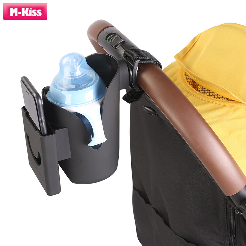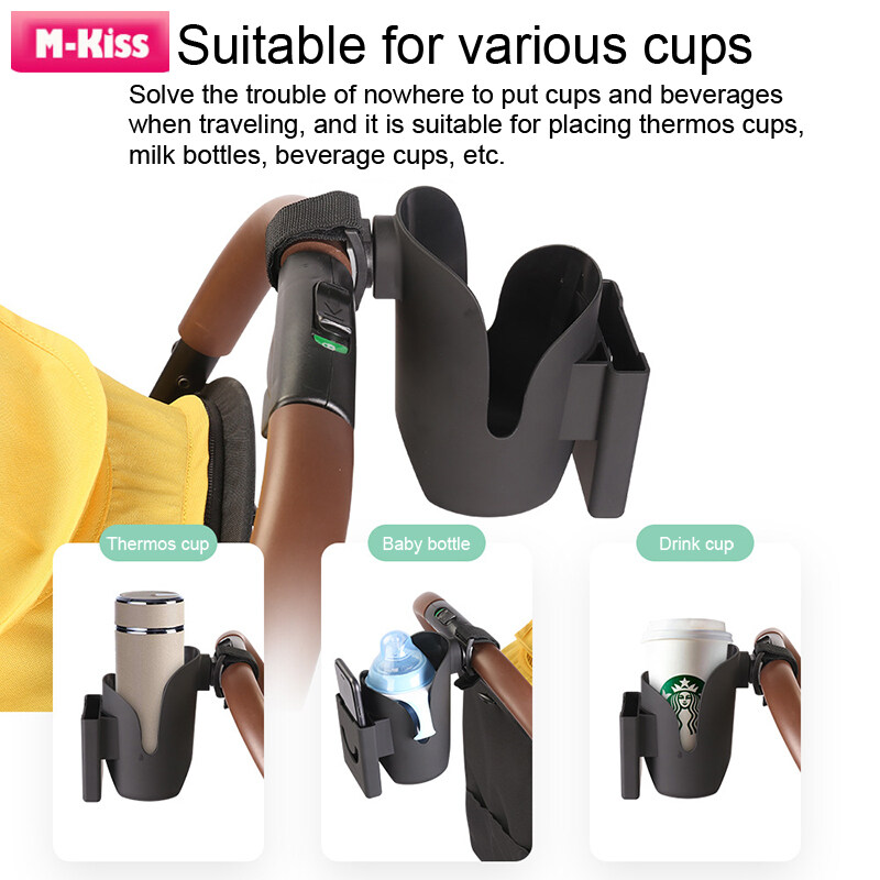 2. This 2-in-1 stroller cup holder with a phone holder, it can load drink bottles and mobile phones at the same time. You can see new messages, incoming calls in the first time, when you are pushing a stroller or running on a treadmill etc. It fits for most phones.