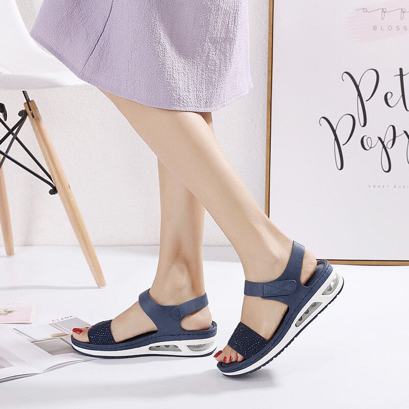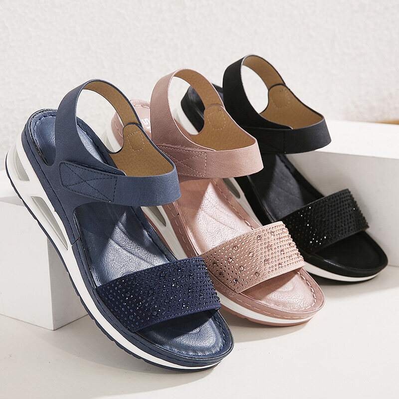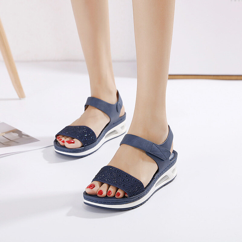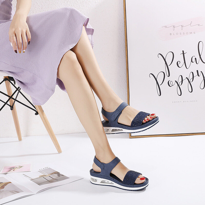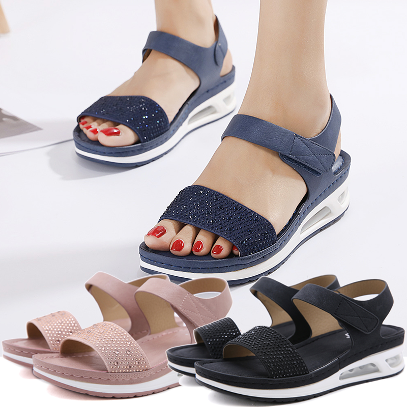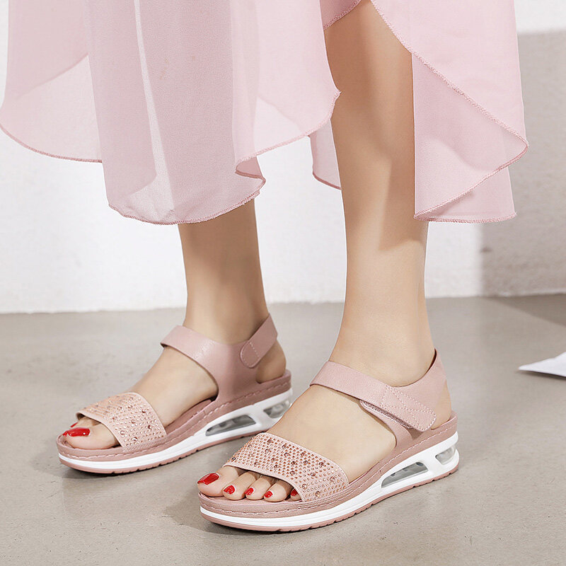 36-42 Air Cushion Sandals for Women Stitching Wedge Soft Comfy Shiny Rhinestone Ladies Shoes Leisure Popular Style Office Wear Korean
