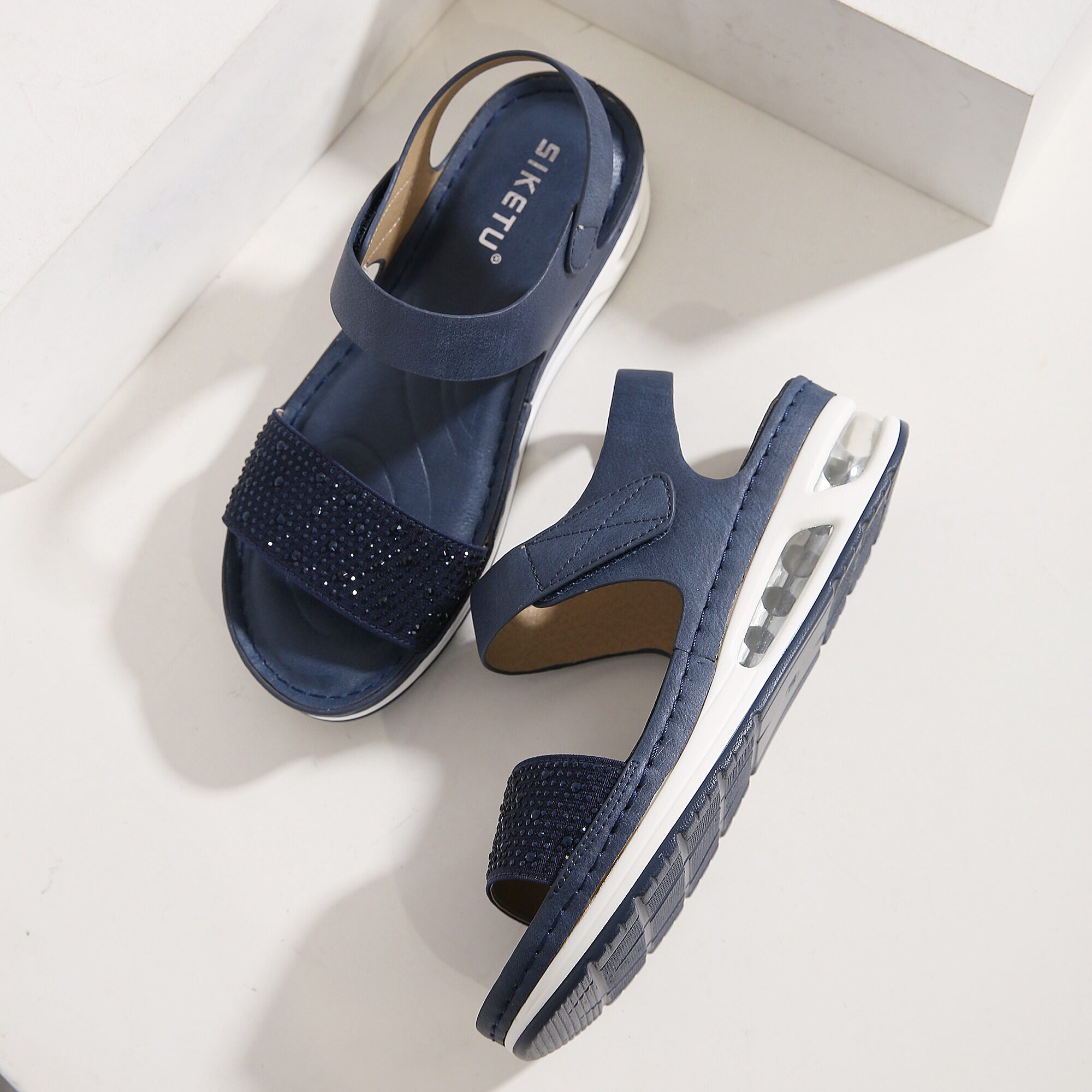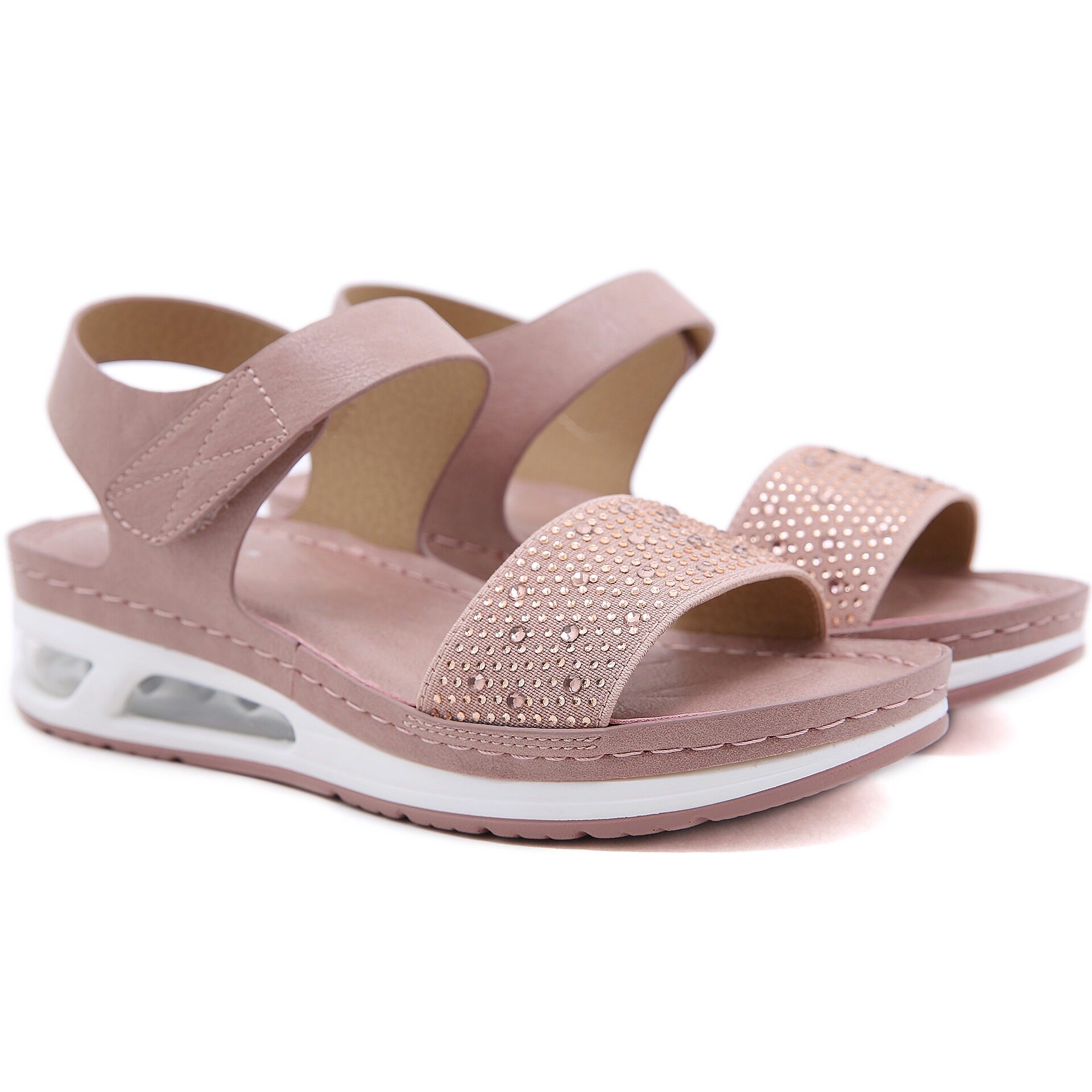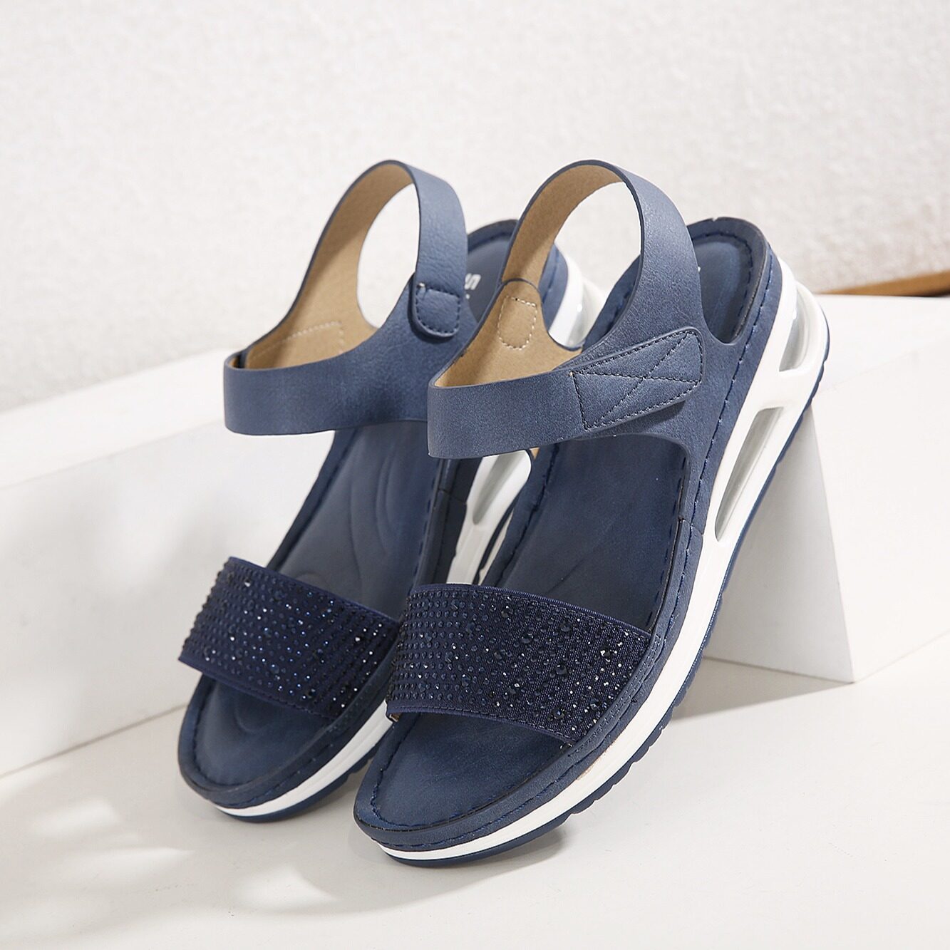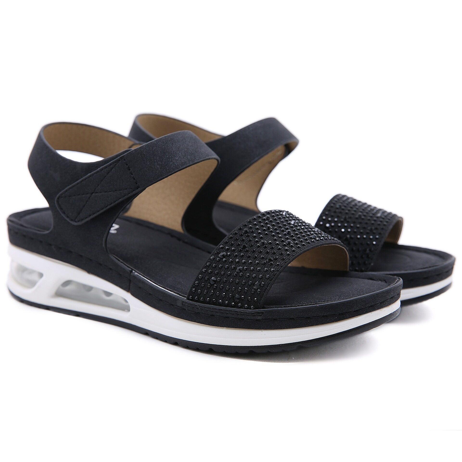 36-42 Air Cushion Sandals for Women Stitching Wedge Soft Comfy Shiny Rhinestone Ladies Shoes Leisure Popular Style Office Wear Korean