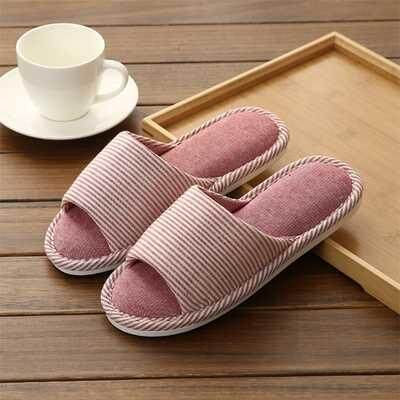 2021 ▶IN STOCK Muji slippers good product home anti-skid men and women couples summer spring and autumn wooden floor summer indoor linen cotton slippers