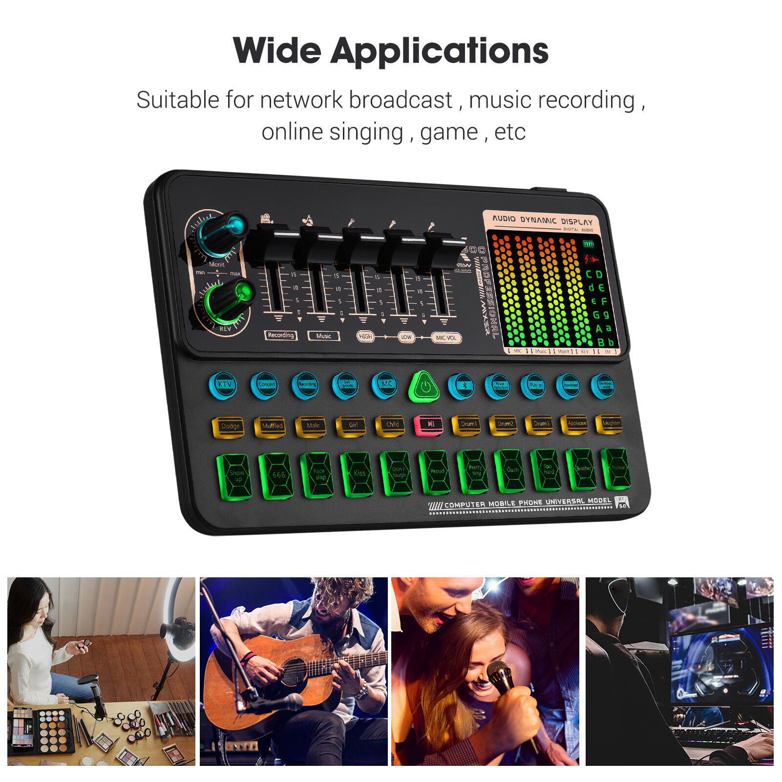 You can connect the sound card with your smartphone or computers via BT to p-lay accompaniment music, And the sound card can work with most mainstream live broadcast software also.