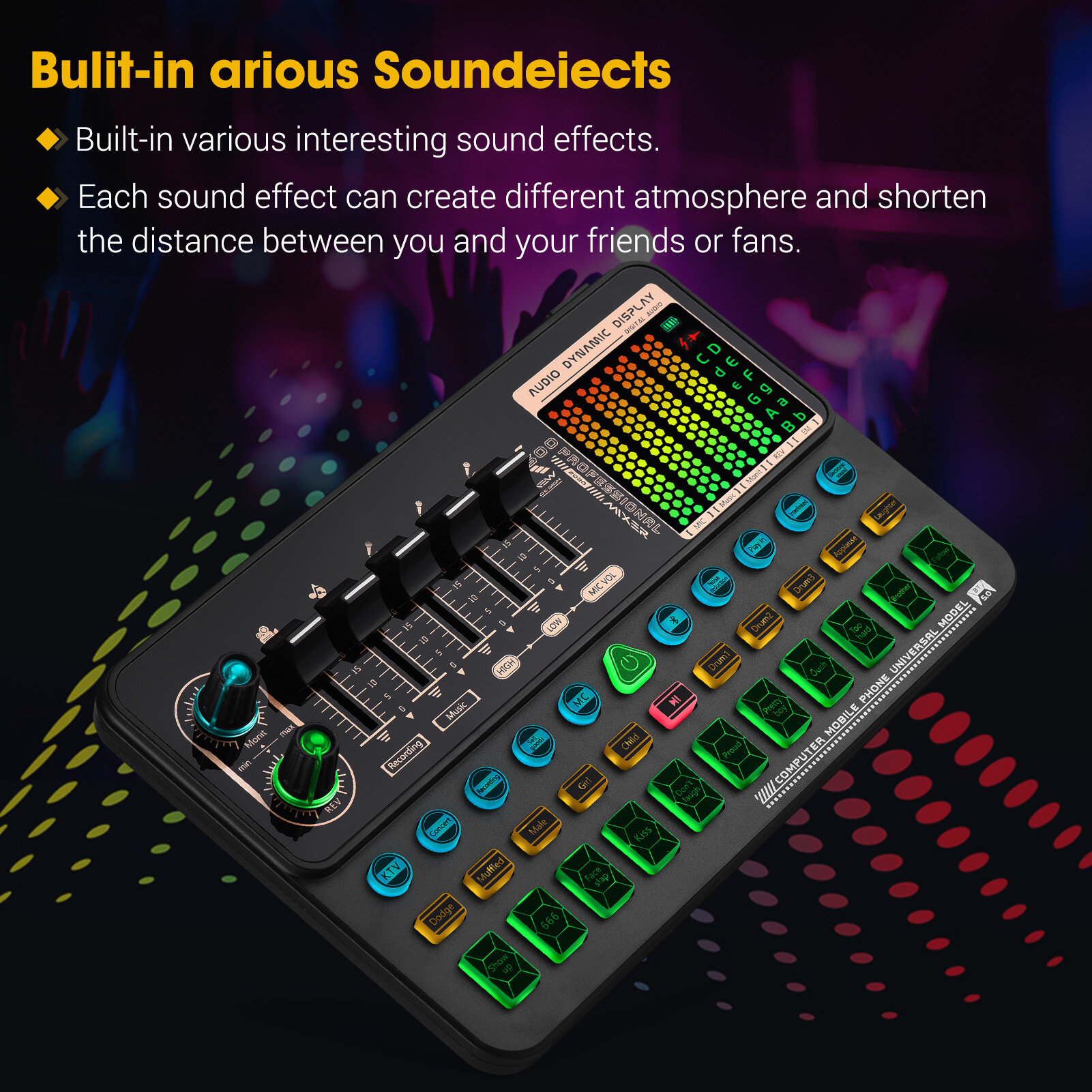 Multiple interfaces allows you to connect the sound card with smartphones, computers, earphone, microphone and speaker to make your live s-treaming more professional.