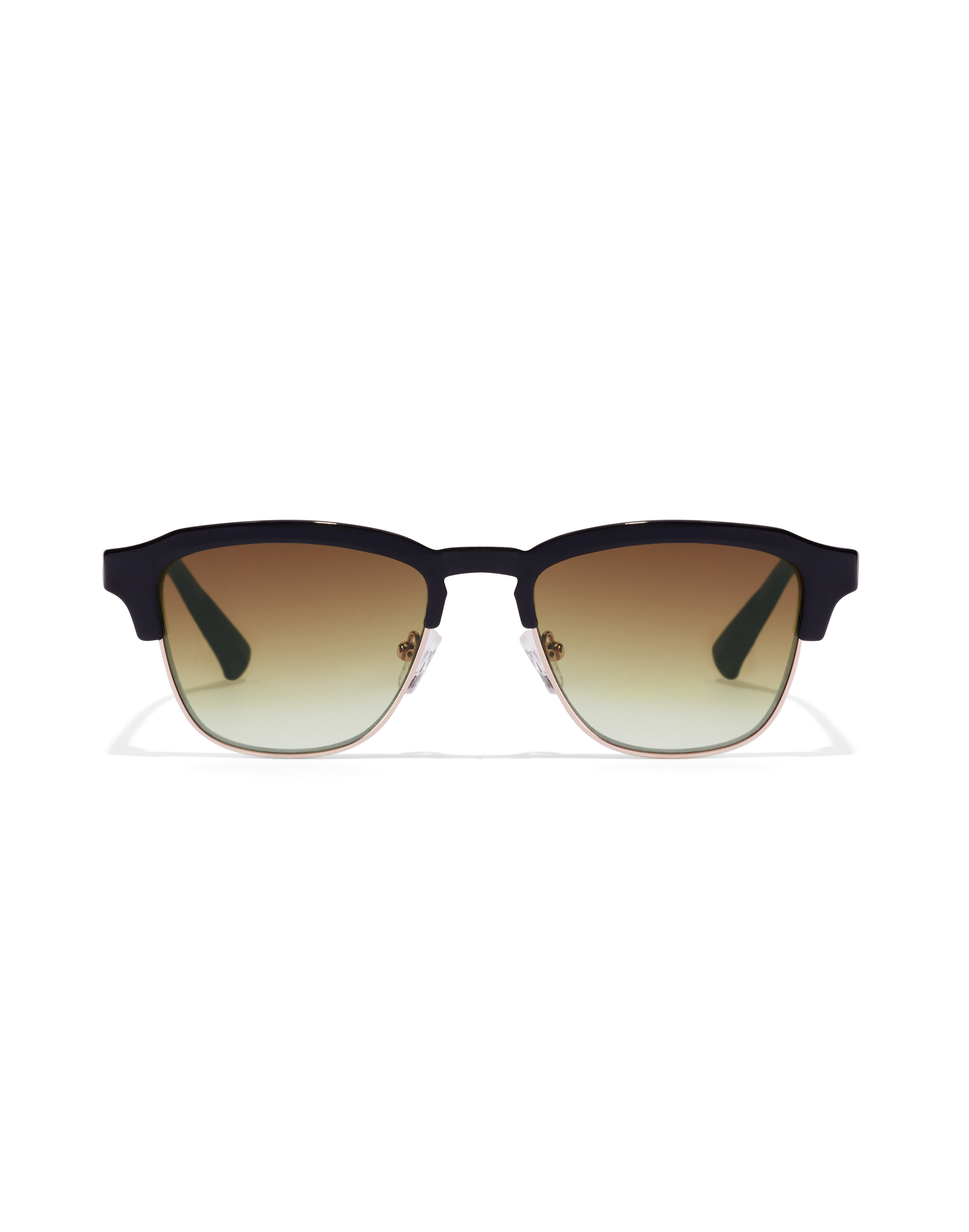 The upper front and polished black sideburns are combined with gold metal bottom rings and degraded brown lenses. Lenses of Eastman, one of the World leaders in copolyester technology. Respects the environment and gives a unique balance between clarity and resistance Category 3 lenses with UV400 protection which offer superior antiglare protection Sunglasses made of Swiss TR90 certified by EMS, considered the best nylon in the world for eyewear frames, providing more flexibility and resistance 5 barrel hinge for improved grip and durability Nickelfree stainless steel rim for corrosion resistance and much more strength Wider design of the earpiece for better ergonomics and comfort Antislip, antiallergy silicon nose pads, fixed with an exclusive Hawkers emblem in stainless steel. Nose pads designed with distinctive geometric lines 45º cut to soften the join between frame and temple, giving perfect continuity Measurements: Front 13.95 cm, Height 4.56 cm, Temples 14.5 cm, Bridge 1.9 cm Includes: Microfiber pouch, box and set of decorative stickers