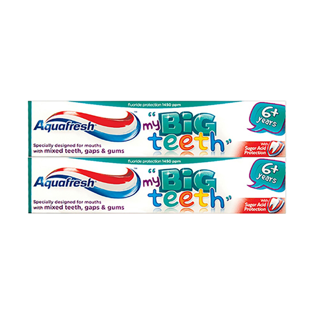 Aquafresh My Big Teeth Toothpaste is specially formulated by experts for children age 6+ years old. It fights sugar acid decay with sugar acid protection* thanks to fluroide and provides self-defence for their teeth. It is strong on protection but gentle on their teeth, to help kids teeth grow up strong! ​