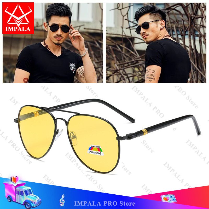 IMPALA PG1836W Fashion Polarized Sunglasses for Men Women Anti Glare Lens Driving Eyewear Night Vision Sun Glasses UV Protective HD Lens Anti-Reflective High-Quality Fishing Glasses