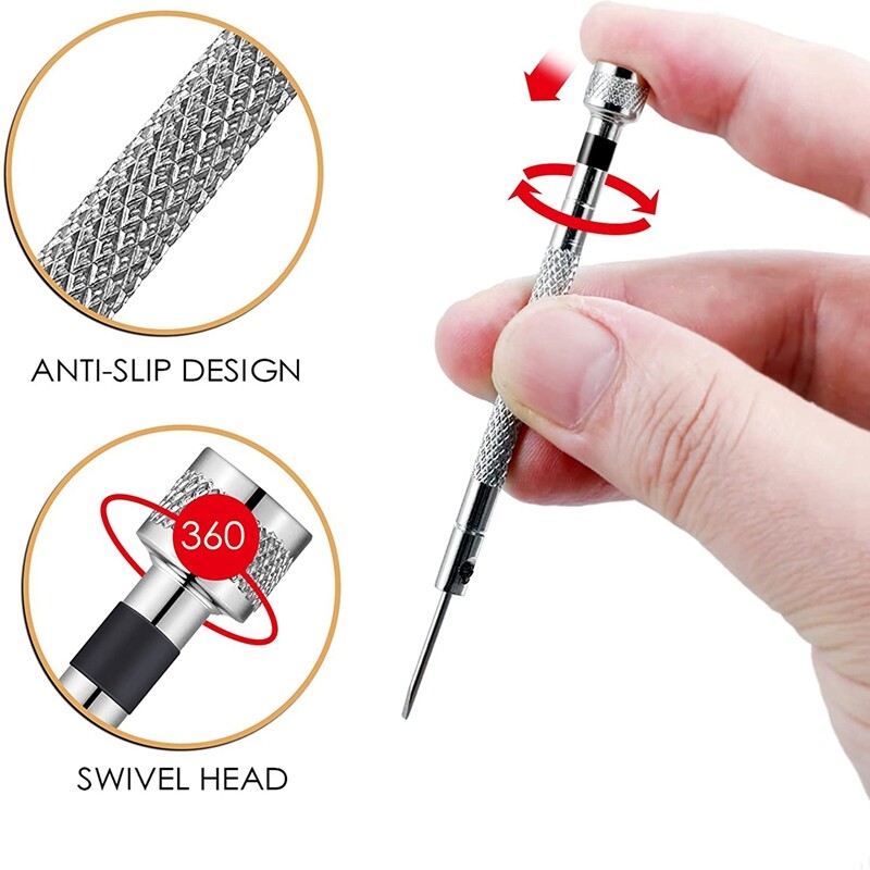 Size details: micro-type precision screwdriver set contains various sizes, 0.80 mm, 1.00 mm, 1.20 mm, 1.40 mm, 1.60 mm; A nice combination for your daily usage and replacement, and this set has a long service cycle Convenient and practical: featuring color-coded cap, screwdrivers precision jewelry screwdriver set is simple and practical, and can quickly identify the size; Rust-proof blade and 10 screwdrivers are workmanlike; Turn the handle cover and press the machine to easily operate the screwdriver by hand. Delicate design: wrist and style screwdrivers have nice weighting and quality durability; It is easy and comfortable to apply owing to rugged stainless steel and textured gripping surfaces; Each tool is durable and corrosion resistant to use with 9 cm/ 3.54 inch in length; Mini Screwdriver is slim, suitable for small screws Extensive usage: watch repair tools are not only suitable for a seasoned watch enthusiast, but also are nice to the beginner to the watch world; You will be amazed by exquisite wrists and style; Durable and advanced, they contain the functionality of adjusting your watch, meanwhile avoid using other gadgets to scratch the watch Multiple function: screwdriver repair kit is not only suitable for watch repair, watch battery replacement, wrist bracelet screw-button disassembly, glasses repair, jewelry work and electronic repair, but also fit for various watches, glasses, straps, hands and accessories; Each screwdriver is equipped with a spare blade replacement