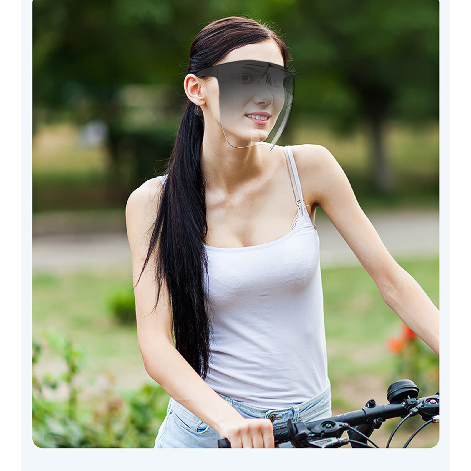 High Quality - Made from premium PC panels, features high temperature resistsance, long-term durability and greater resistance against scratches. Super clear face shield sunglasses can hold up to the wind, you can use it as a wind shield when cycling/biking.