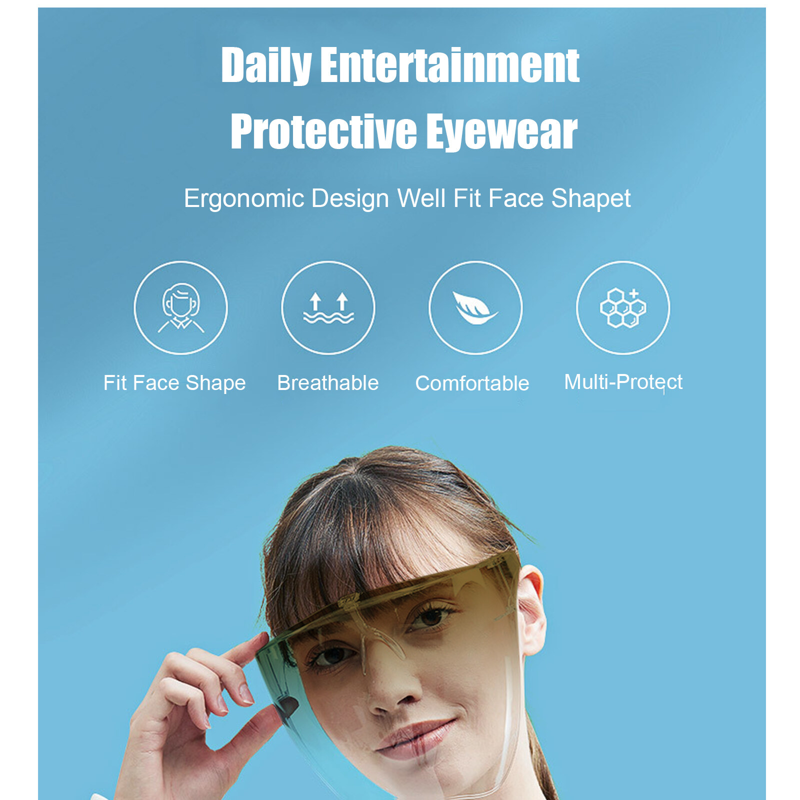 Overall Protection - Full face design can protect your eyes, nose and mouth. The tinted spectacles is perfect choice for outdoor activities like shopping and traveling, and fashionable to fits many clothes styles all year round. It is suitable for both men and women, and any climate and weather conditions.