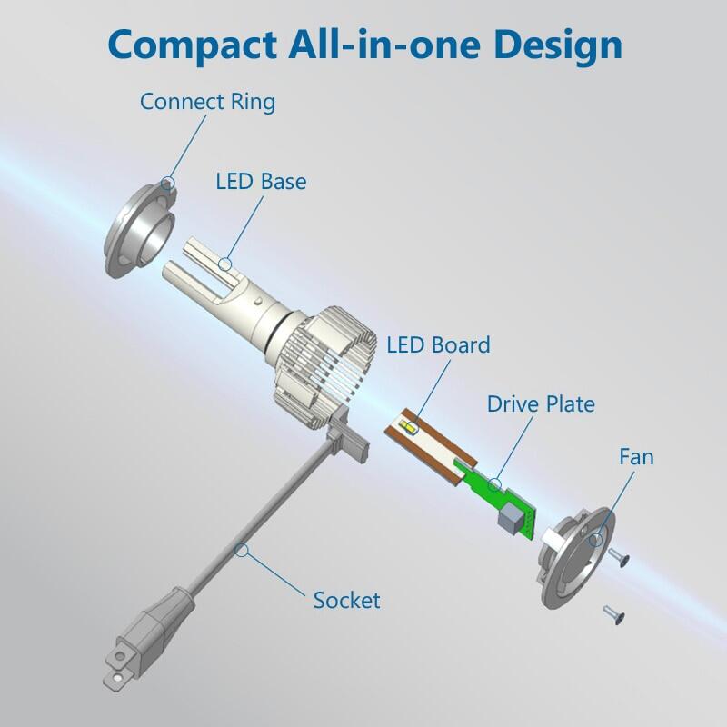 Base H1(P14.5s), H4(P43t), H7(PX26d), 9005(P20d), 9006(P22d), 9012(PX22d), H8(PGJ19-1), H11(PGJ19-2), H16(PGJ19-3)