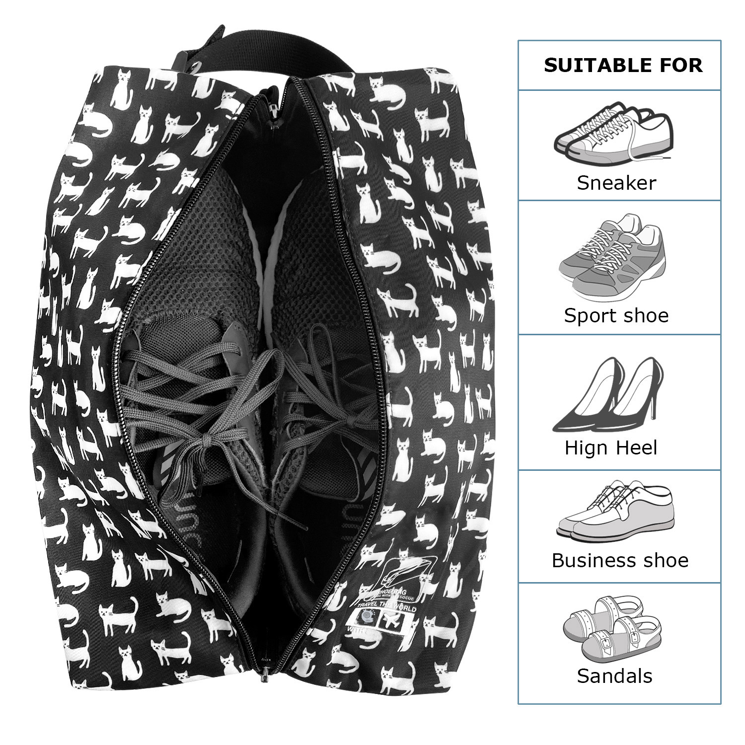 Equipped with a sturdy and comfortable handle with a snap button design, this cute and portable shoe travel bag is easy to carry wherever you go and is definitely a great design for organizing, storing and keeping your shoes and clothes tidy and neat. It can be even used at home, school or in the office as a makeup bag, toiletries bag or grooming kit. Take your organization skills to its next level.