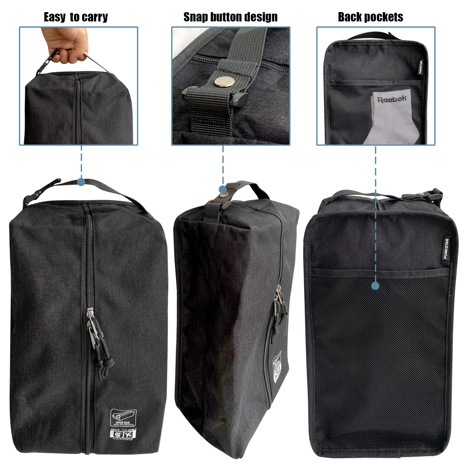 PUNKSTAR Water-resistant Shoe Bags for Gym Sports Traveling Hiking and Storage with Zipper Closure Shoe Storage Organizer for Men Women Kids
