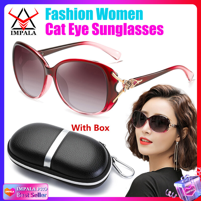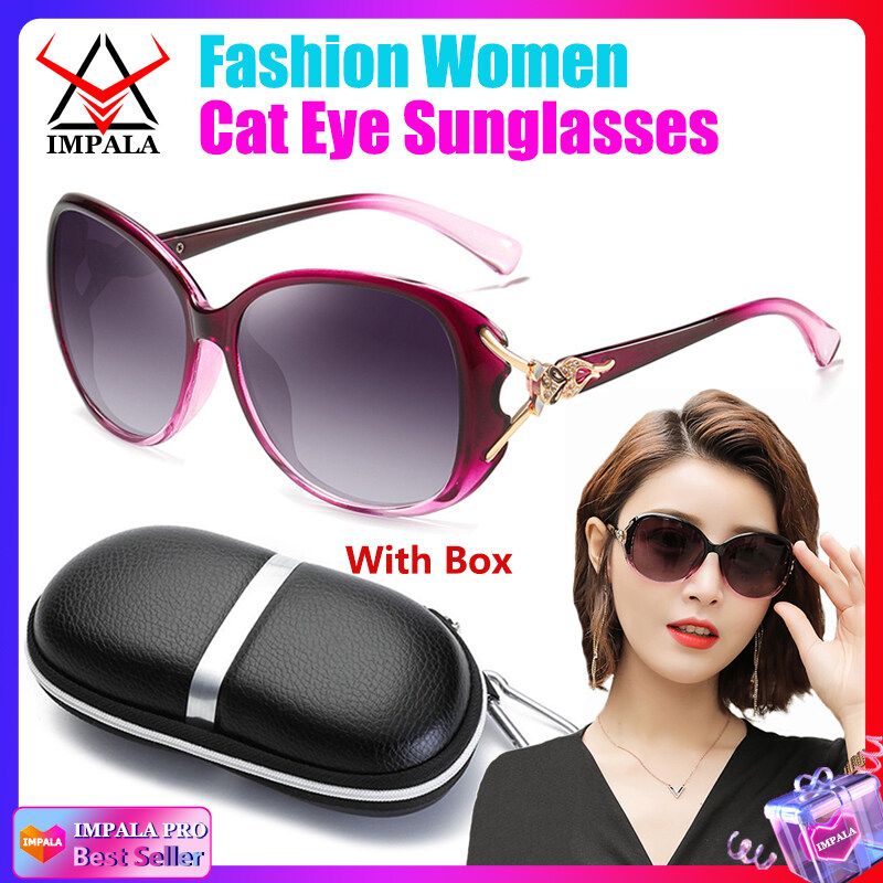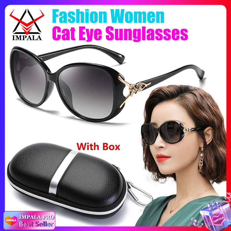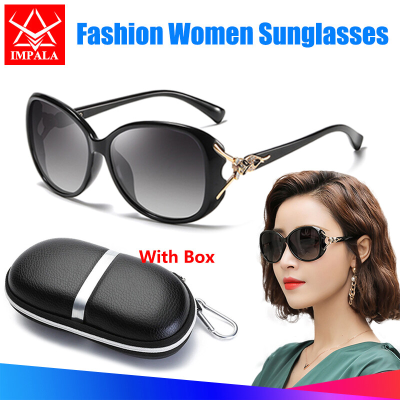 IMPALA QT102L Fashion Women Sunglasses Anti Glare UV Protection Korean Style Sun Glasses With Glasses Case Resin HD Lens Black Shades Oversized Glasses