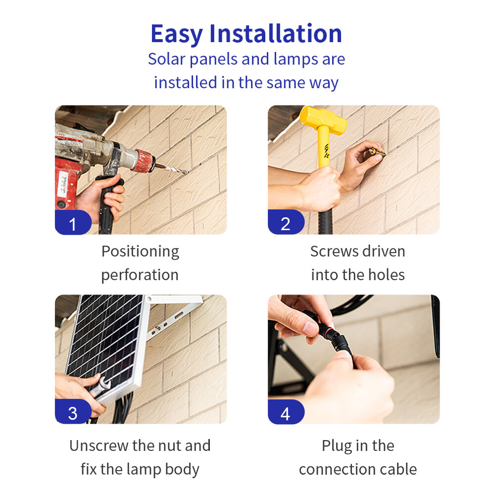 50W: Solar panel: 350*235mmThe lamp body: 210 * 160 mmBattery capacity: 8000mAh Lighting duration: 8-24 hours