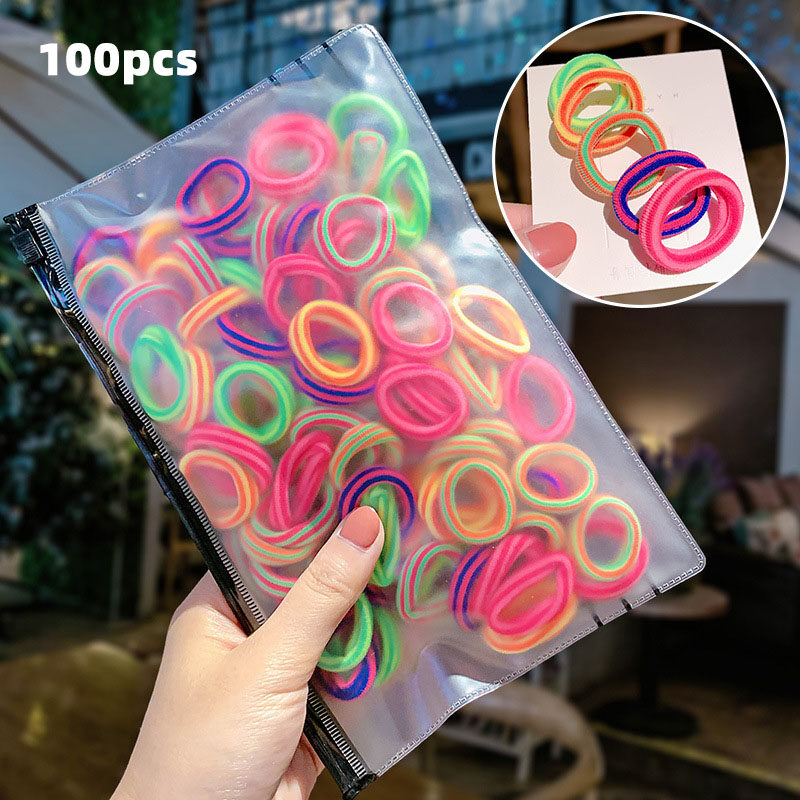 100Pcs/Pack Baby Hair Bands Cute Colorful Elastic Rubber Girl Kids Hair Rope Lovely Ponytail Holder Hair Ties Hair Accessories