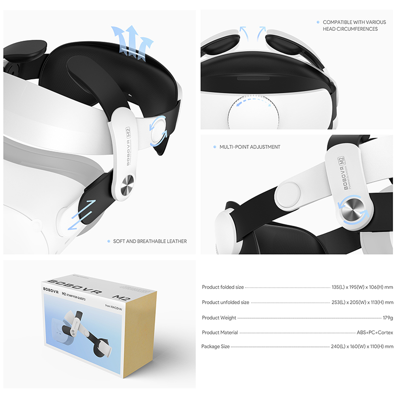 Amorus BOBOVR Accessories 】No Fog BOBOVR M2 Strap F2 for Oculus Quest 2 Active Air Fan No Fog Facial Interface Replace Face Pad 2 Speed Adjustable Relieve Lens Fogging for Quest 2【In Stock】