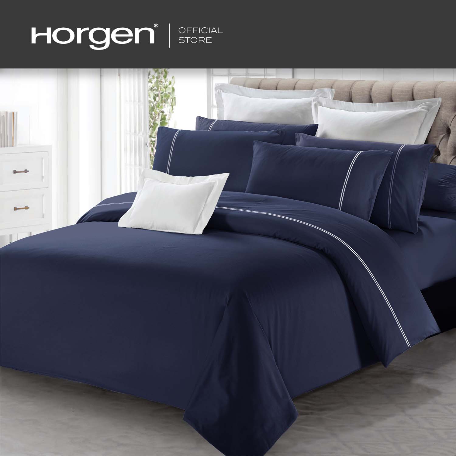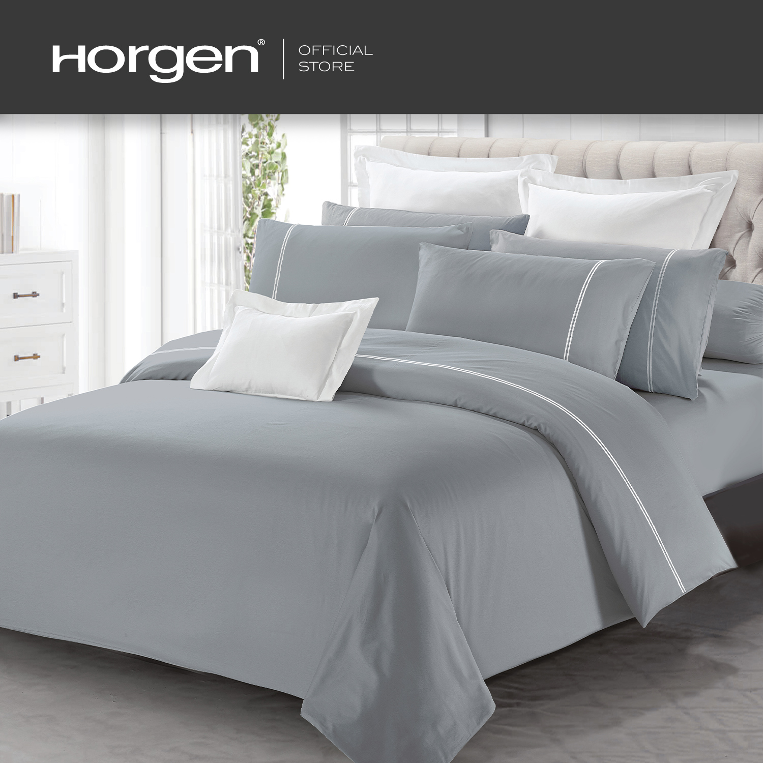 HORGEN Luxe Collection Barrett Hotel Series brings you quality, silky sheets for a contemporary and minimalistic hotel look at home. Made with extra-fine 100% Egyptian Cotton Long Staple yarns, these sheets are silky smooth and soft to the touch. Finished with elegant equal-weighted double line embroidery for the hotel look, this range of sheets comes in various contemporary hues that have been dyed using the reactive dye process, resulting in steadfast and long lasting colors.